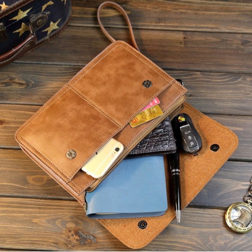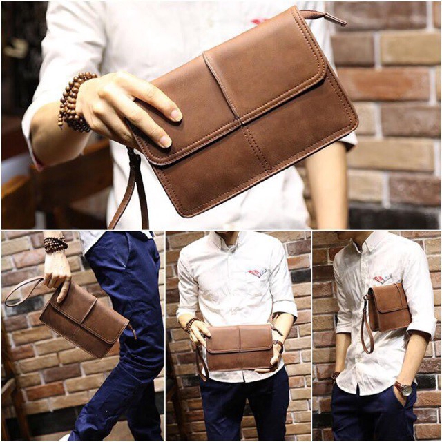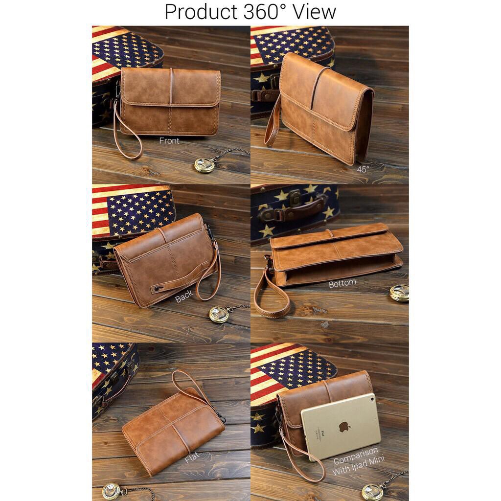 【Local Delivery】Men Hand Bag Classic Brown Cool Leather Hand Carry Clutch Bag