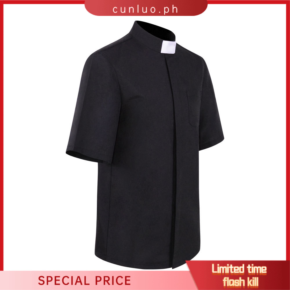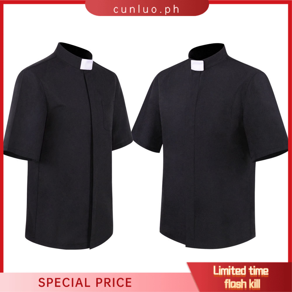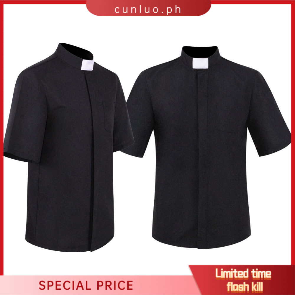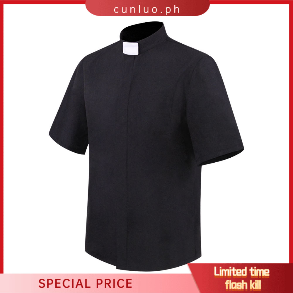 Men Priest Shirt Pastor Clergy Stand-up Tab Collar Catholic Church Minister Preacher Short Long Sleeve Tops Roman Blouse
