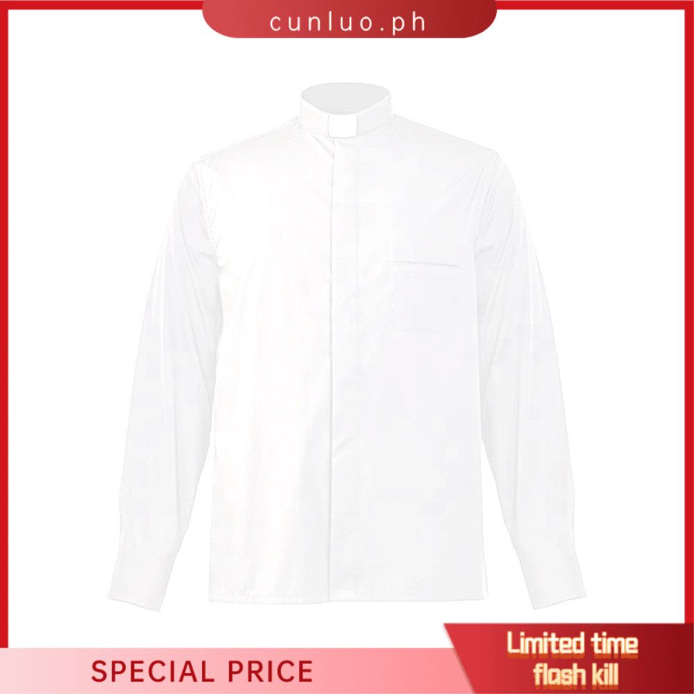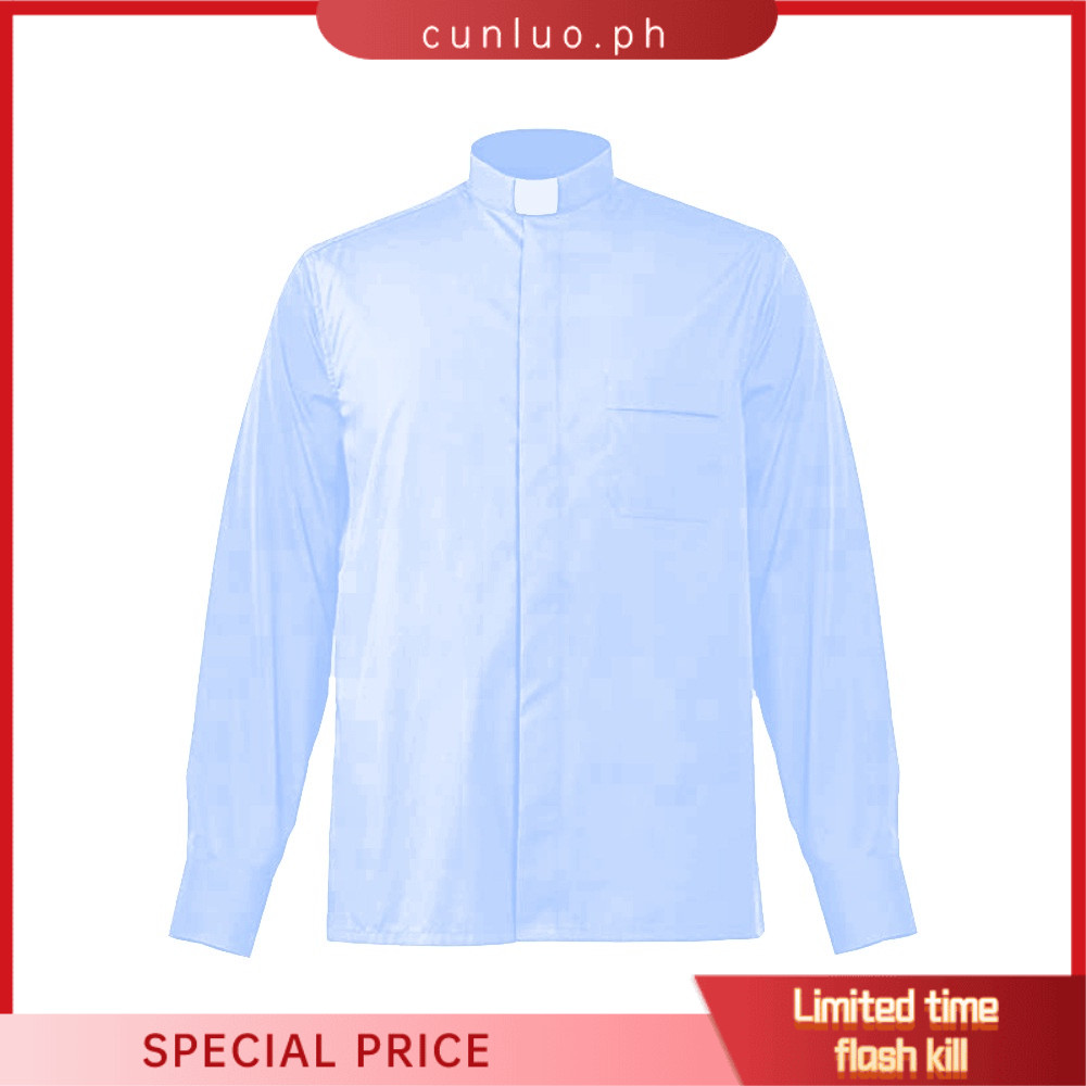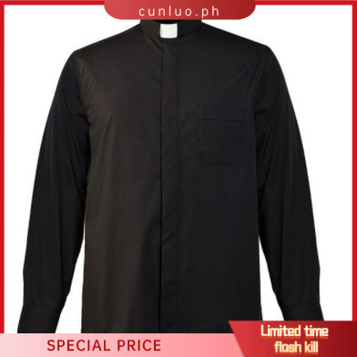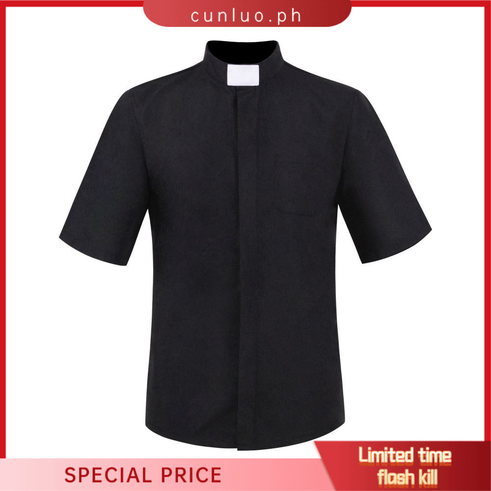 Men Priest Shirt Pastor Clergy Stand-up Tab Collar Catholic Church Minister Preacher Short Long Sleeve Tops Roman Blouse