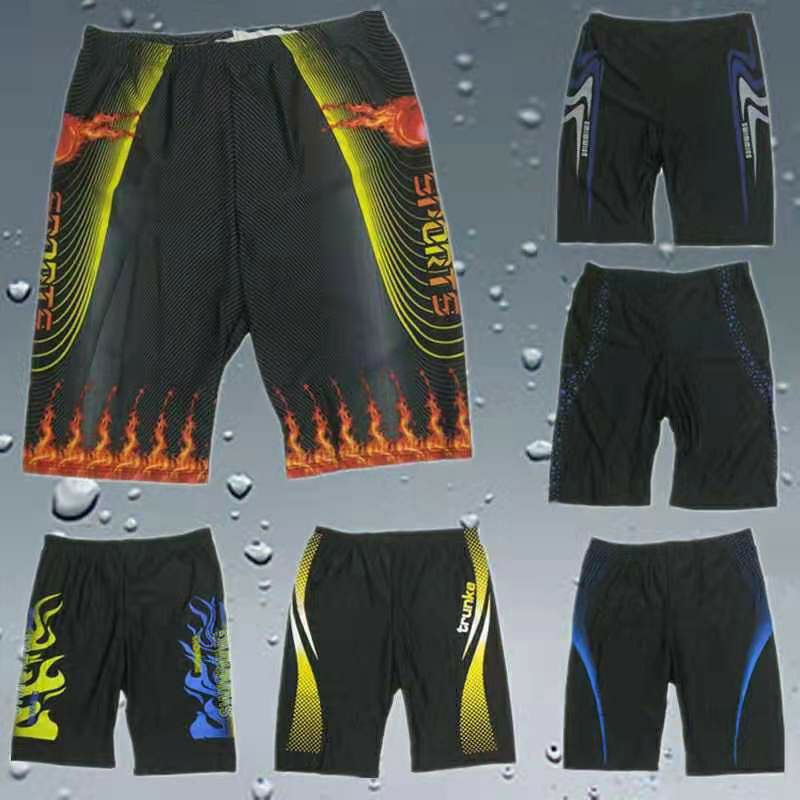 Men Swimming Trunk Nylon Spandex Summer Print Boxer Briefs Bathing Suit Beach Quick Dry Swimwear