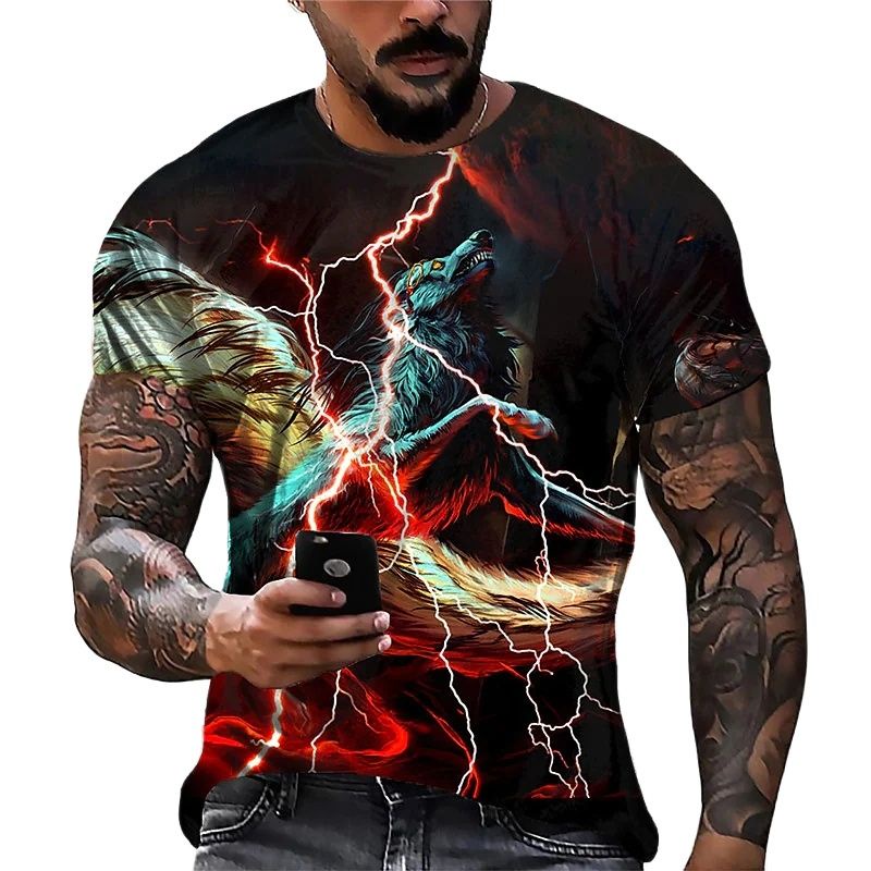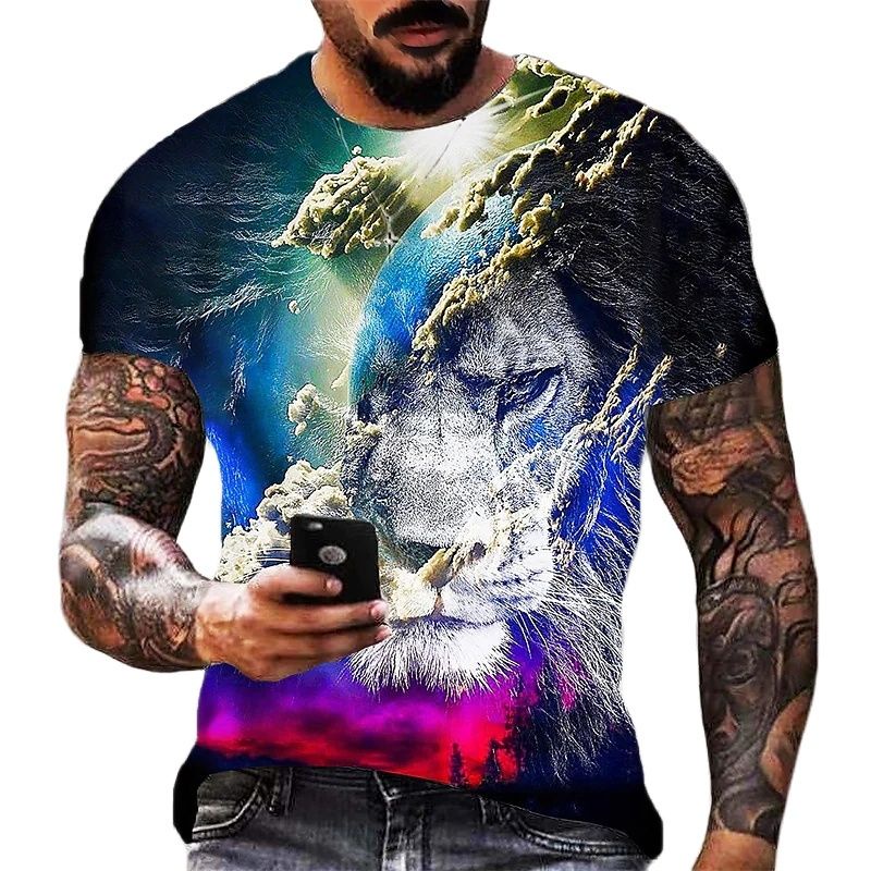 Men Vintage Animal T-shirts For Men 3d Lion And Tiger Print Men's Shirt Oversized Short Sleeve 6xl Top Tee Shirt
