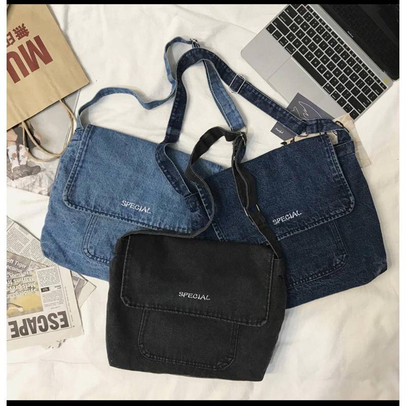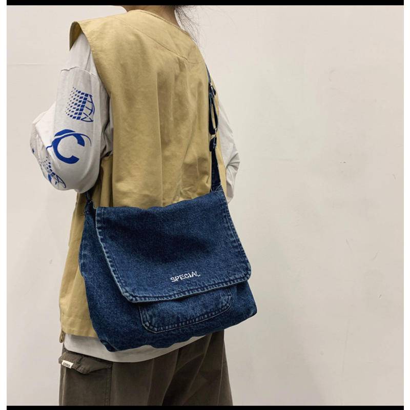 Men Women Canvas Shoulder Bag New Style Diagonal Denim Bag Literary Student School Bag Messenger Bag Simple Tutorial Bag Coup