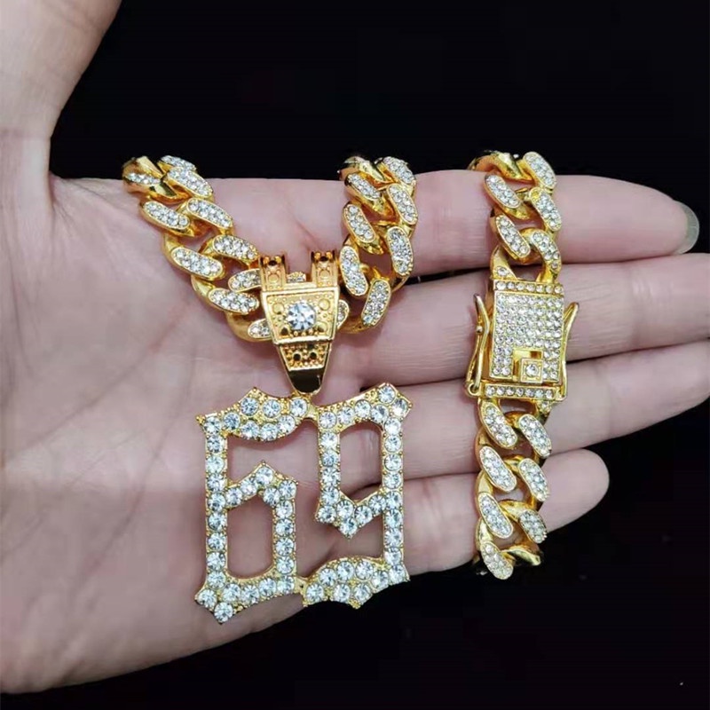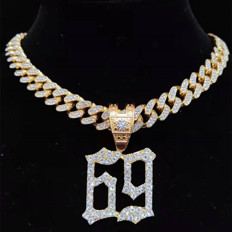 Men Women Hip Hop 6ix9ine Rapper Pendant Necklace with 13mm Miami Cuban Chain Iced Out Bling Hiphop Necklaces Fashion Jewelry Vhj