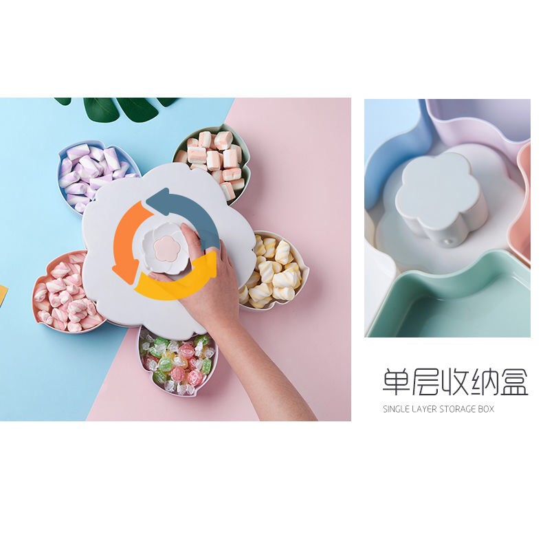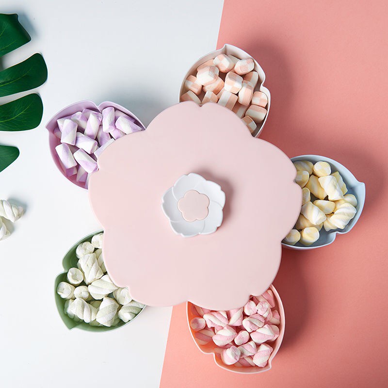 MengShop Rotating fruit box Creative Five Grid Compartment Dried Fruit Plate Party Snacks Serving Tray