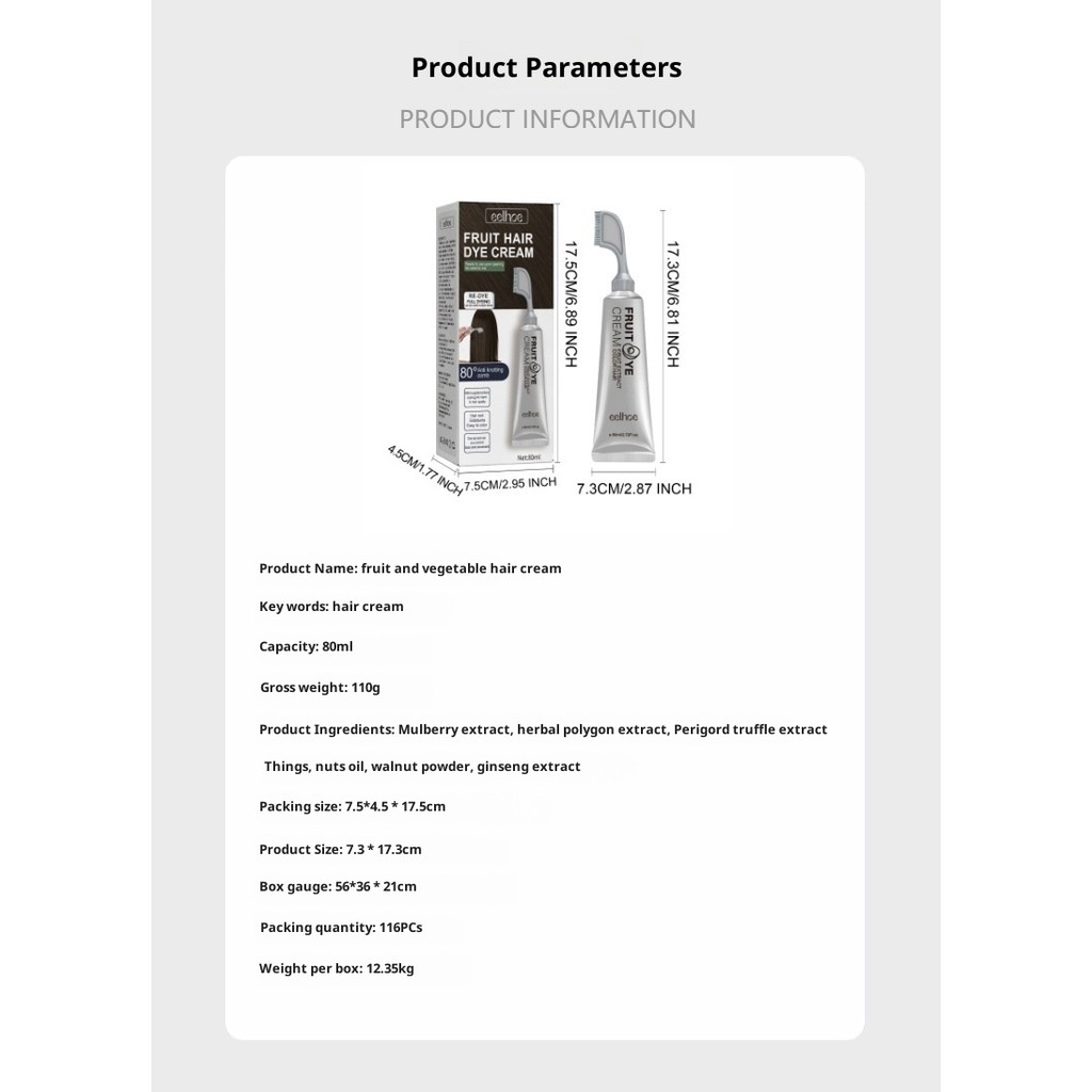 【Gentle & Long-Lasting Color】EELHOE Herbal Vegetable Hair Color Cream Natural Gray Coverage Hair Dye Tint For Men/Women Non-Damaging Scalp Care Easy Application