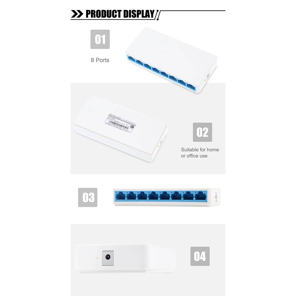 Mercury 8 Port RJ45 10/100Mbps Network Switch Mini Fast Ethernet RJ45 Cable Splitter LAN Hub S108C