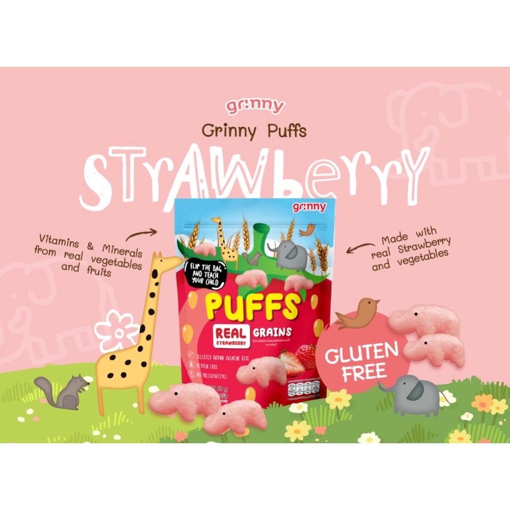 Grinny Puffs Real Grains Strawberry 60G
