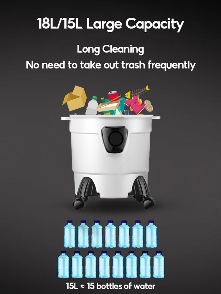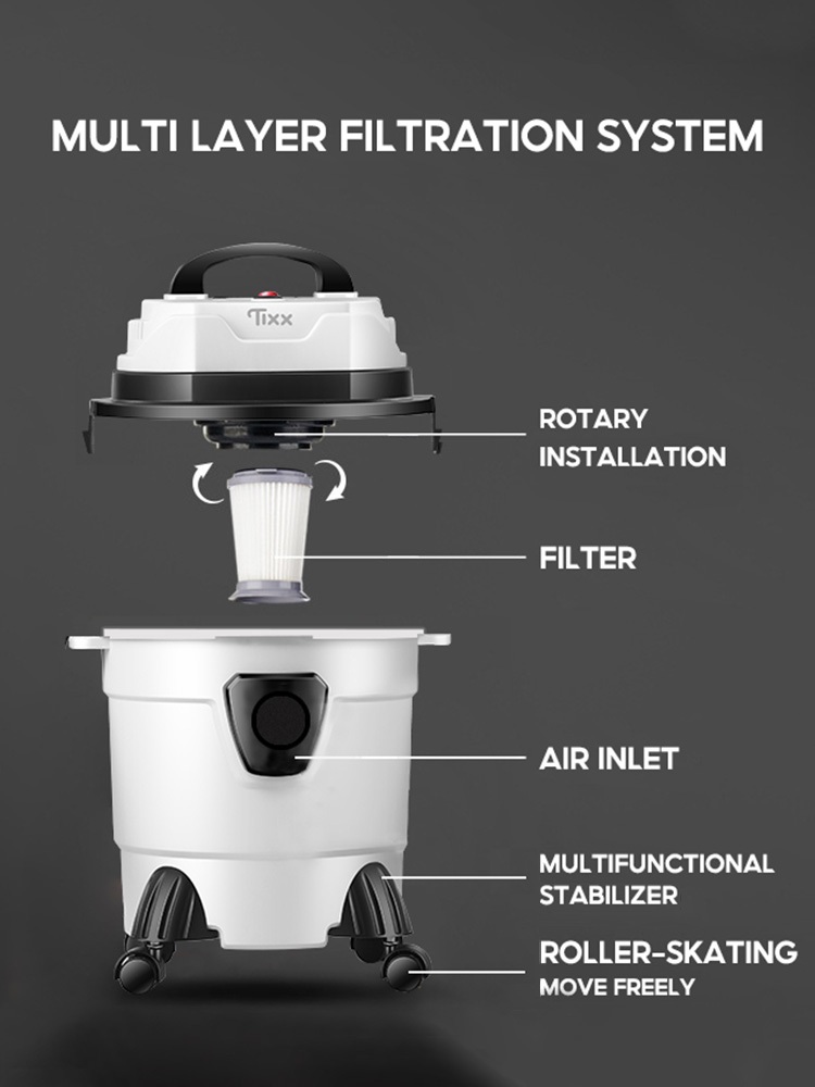 Tixx Vacuum Cleaner For Home Dry And Wet Blowing 3In1 ABS 18000Pa Super Strong Suction 15 Capacity