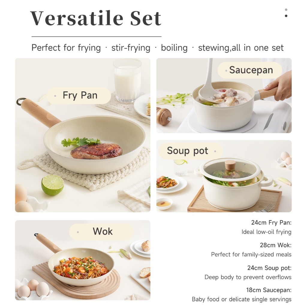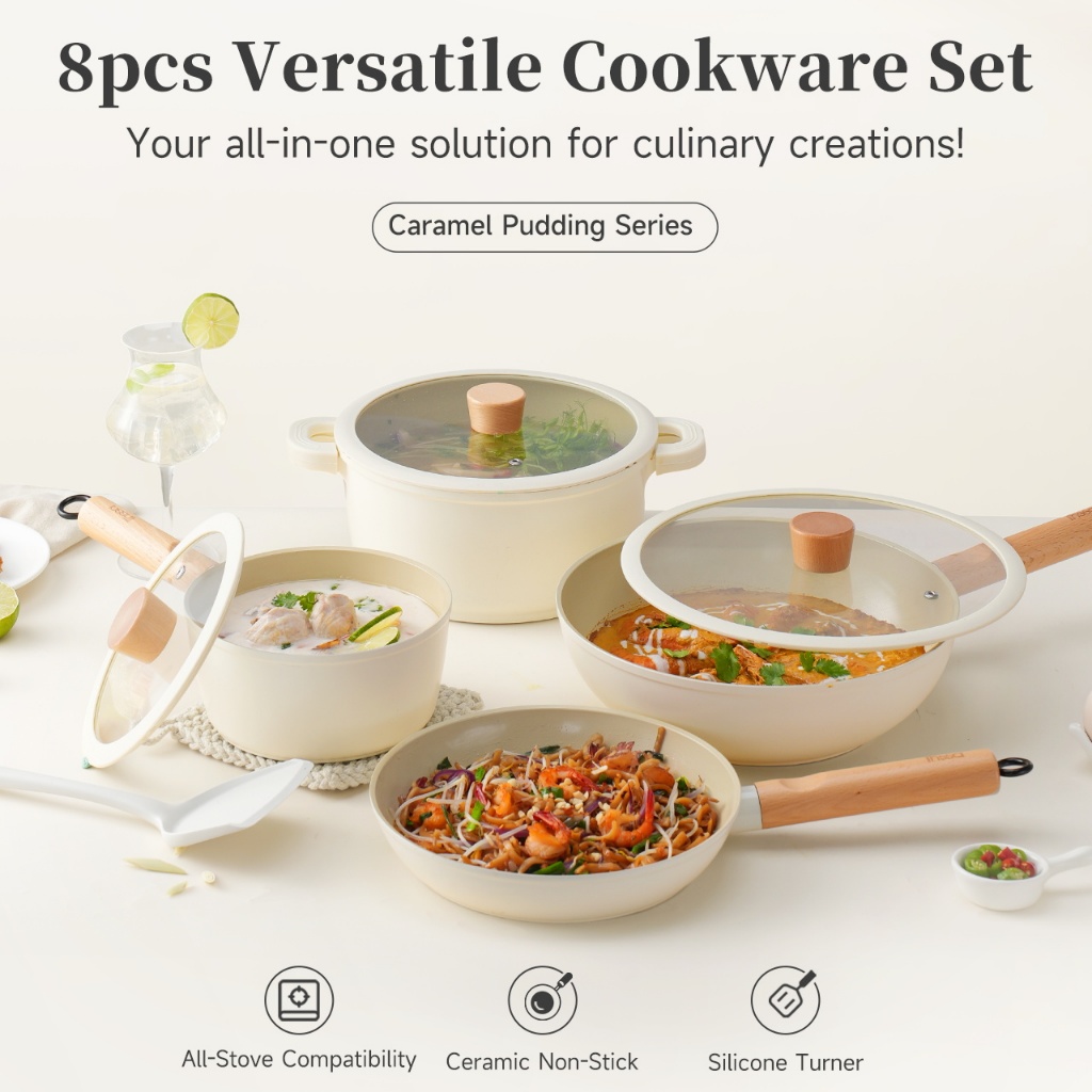 Simplus Cookware Set Non-Stick Ceramic Saucepan Wok Fry Pan Stockpot PTFE & PFOA Free Suitable for All Stoves