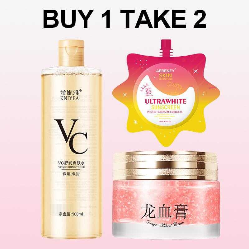 BUY 1 TAKE 2Vitamin C Toner + AERENEY Sunscreen+ Retinol Dragon's Blood Cream - Brightens Skin Bd4