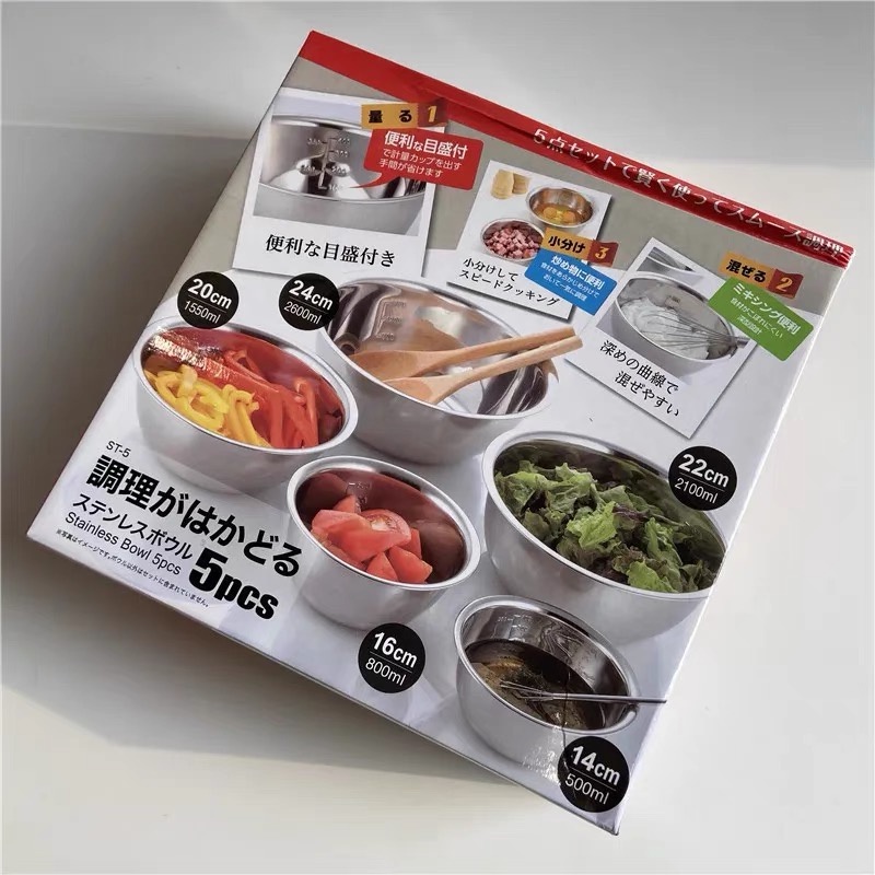 Seasoning Bowl 5 in 1 set stainless steel basin mixing bowl -HAYAHAY