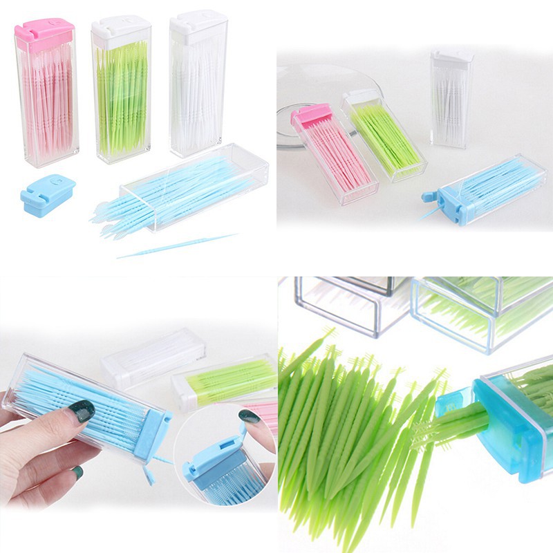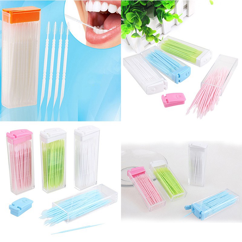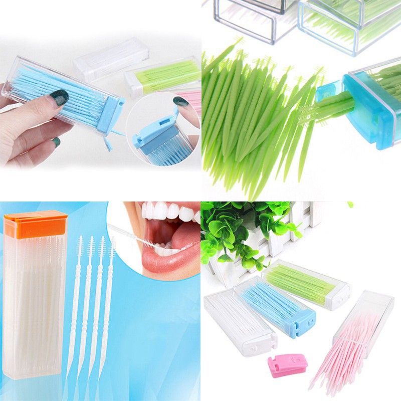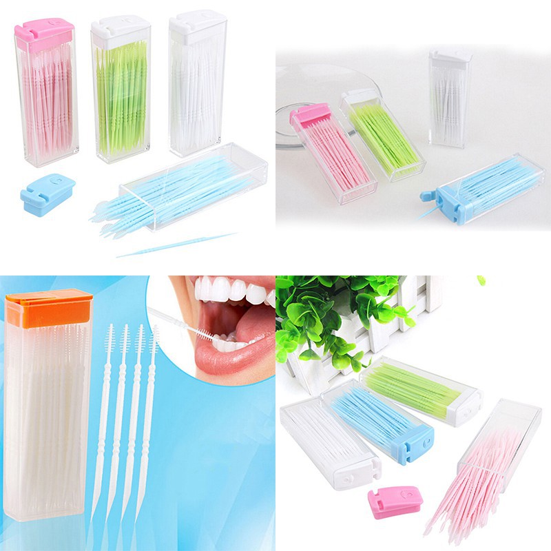 2 Way Oral Dental Tooth Pick Interdental Brush with Portable Case Pink