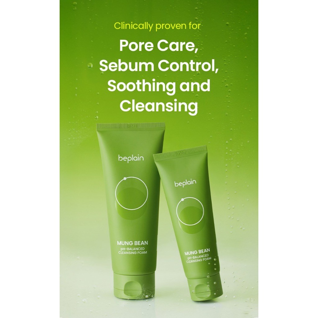 Beplain mung bean pH balance cleaning foam 80ml | mild fragrance free natural facial cleanser | suitable for acne prone, oily and sensitive