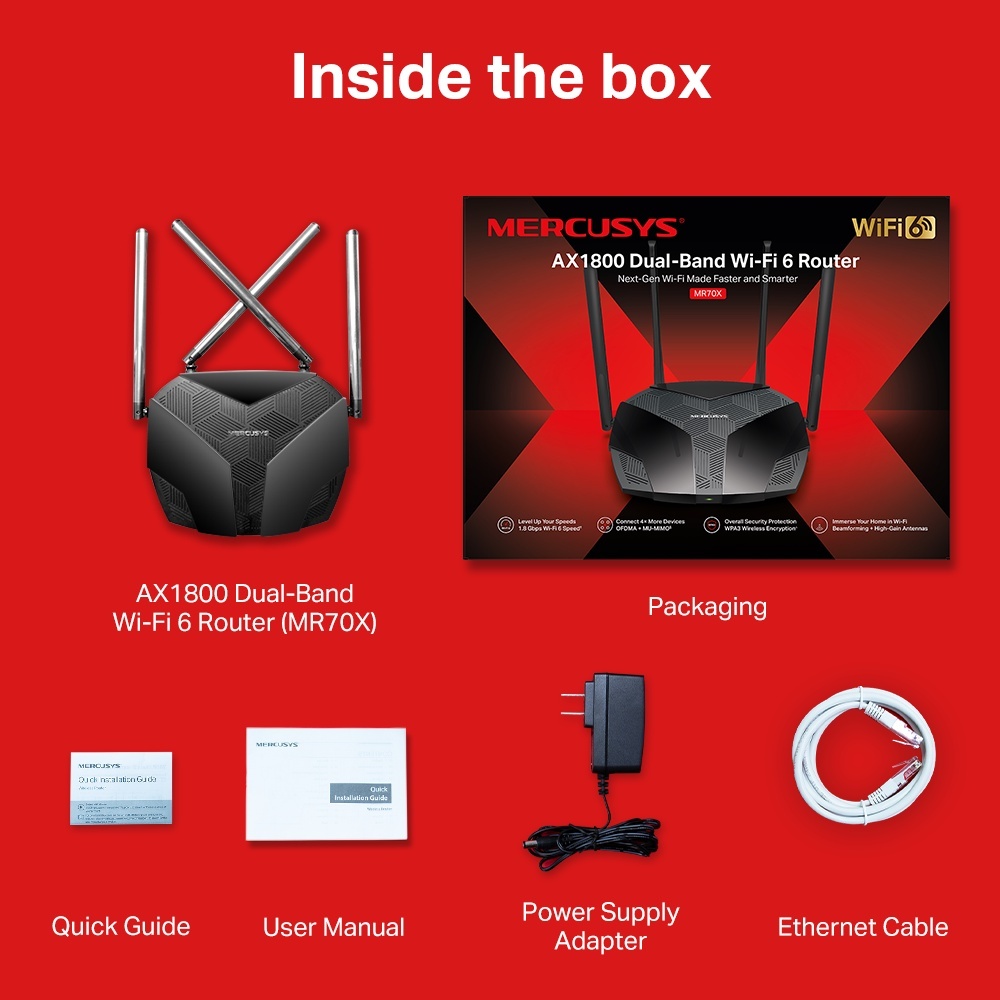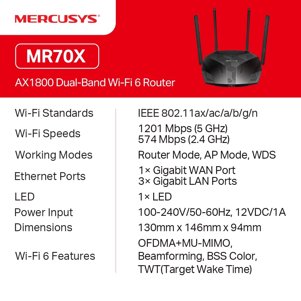 Mercusys MR70X AX1800 1.8Gbps Dual Band Gigabit Wi-Fi 6 Router Access Point | Home Wifi Router