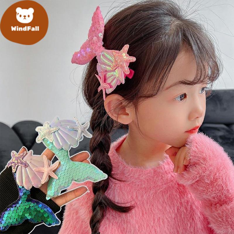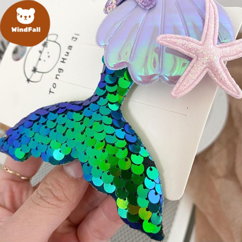 Mermaid Children Hair Accessories Cute Starfish Shell Sequins Stage Performance Cartoon Hairpin WF