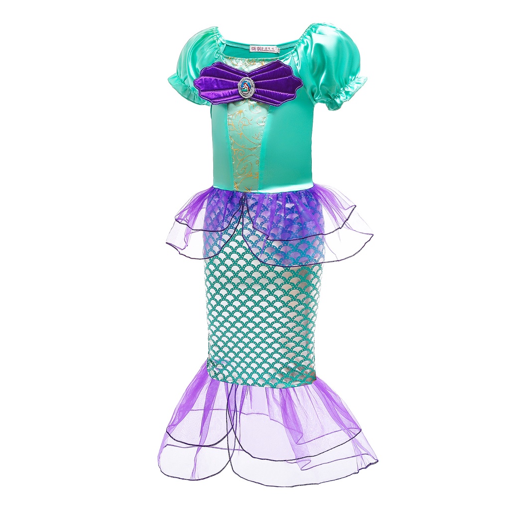 Mermaid Dress Disney Princess Ariel Costume Luxury Print Lace Ruffle MAX