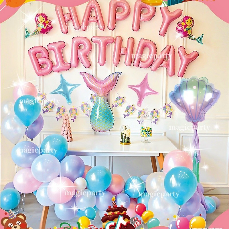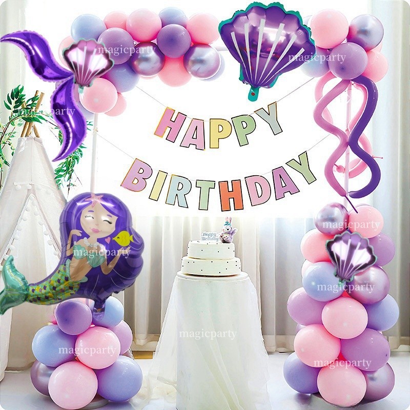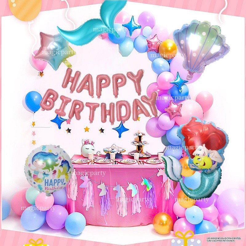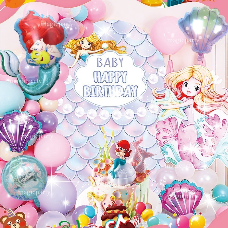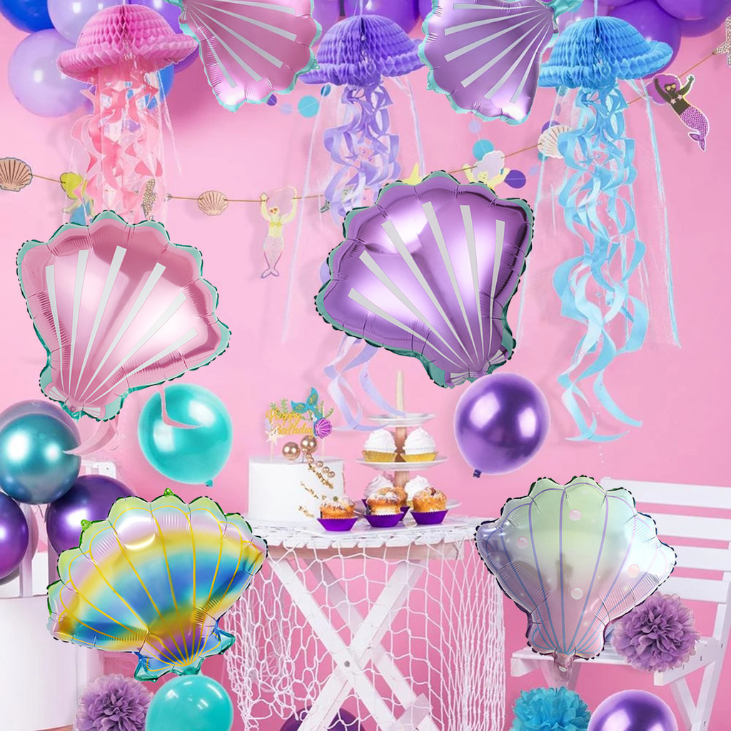 Mermaid Theme Party Decorations Macaron Latex Balloons Pearl Shell Mermaid Tail for Kid Birthday Decorations Party Needs
