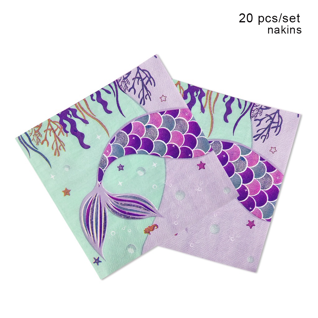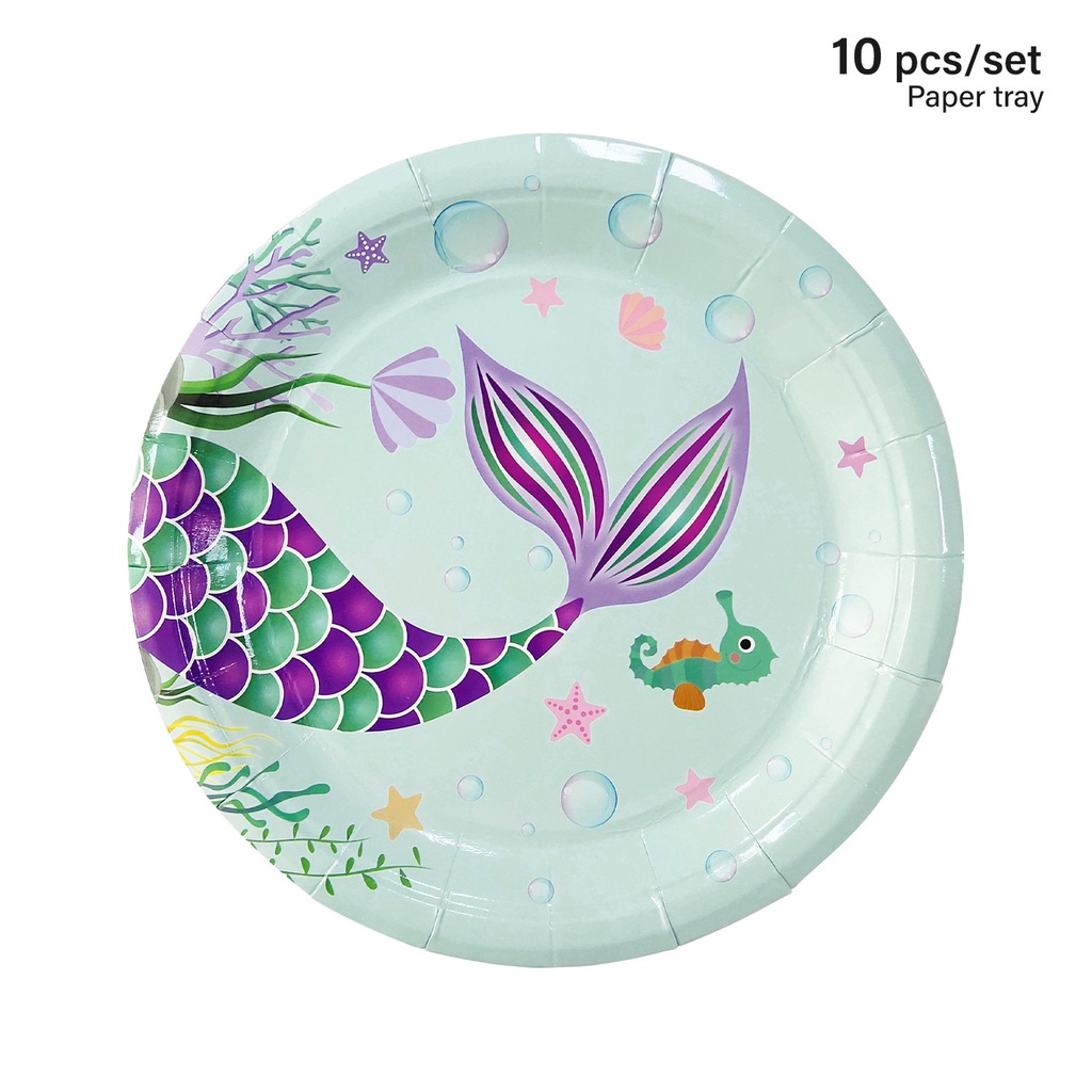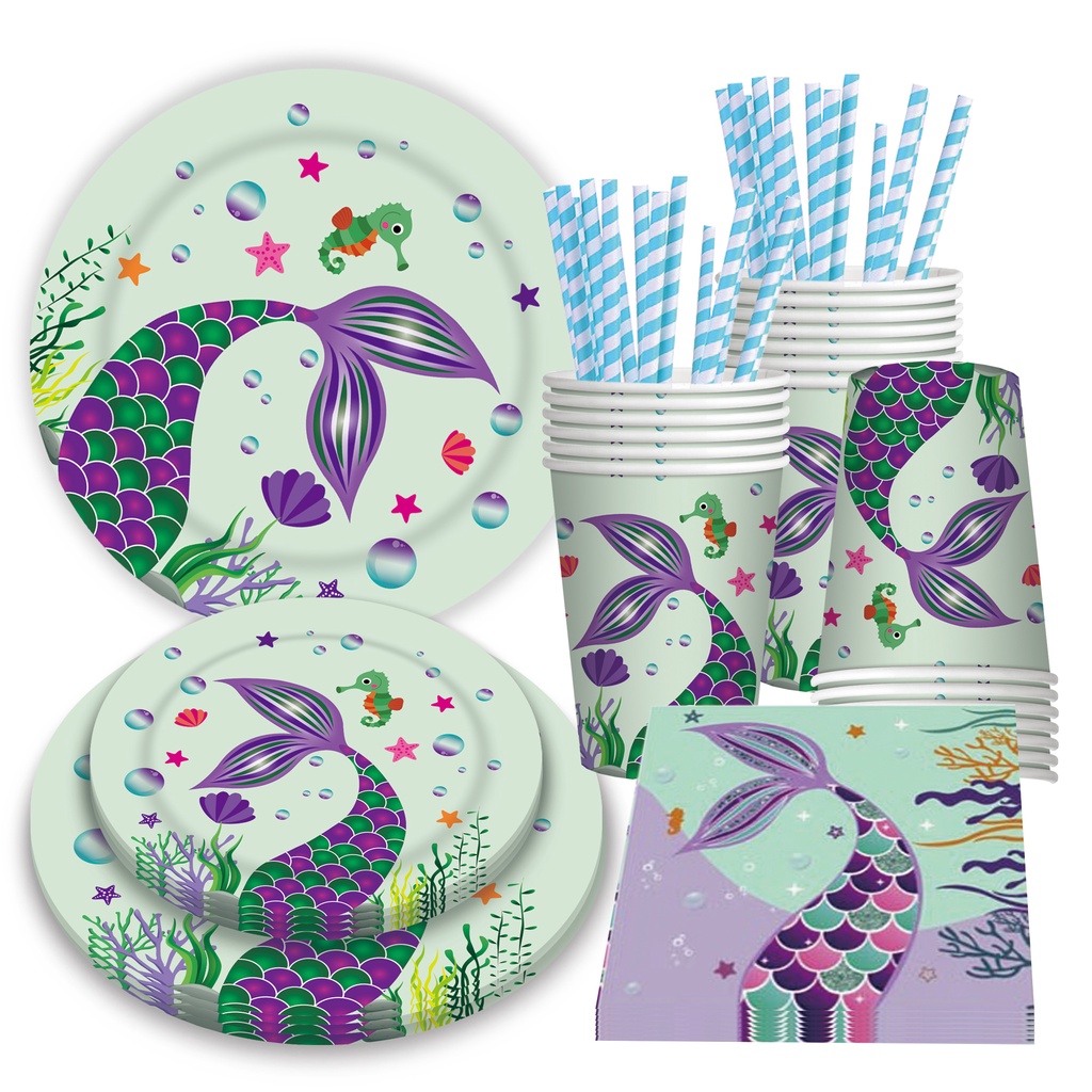 Mermaid Theme Party Tableware for Birthday Decorations Mermiad Banner Mermaid Tail Cup Plates
