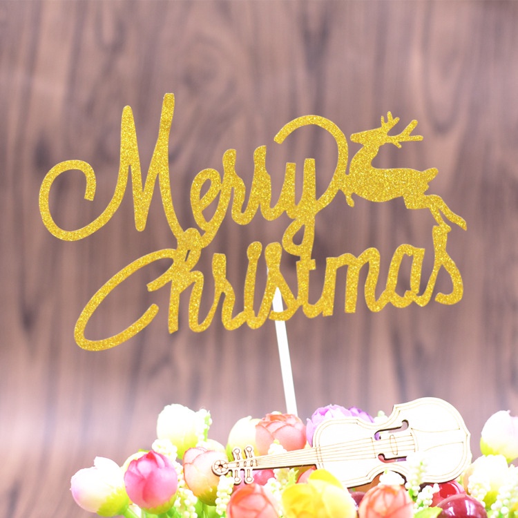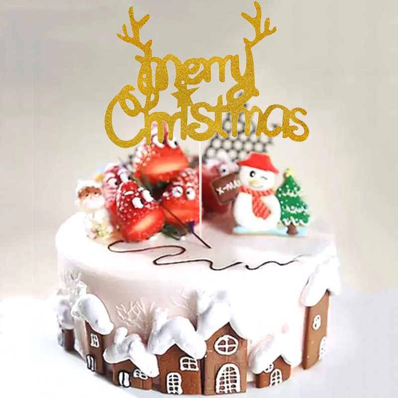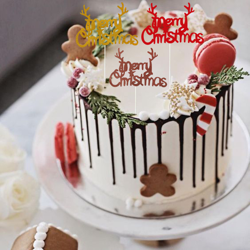 Merry Christmas Cake Topper Cupcake Toppers Flags DIY Cake for Christmas Ornaments Decorations Party Needs