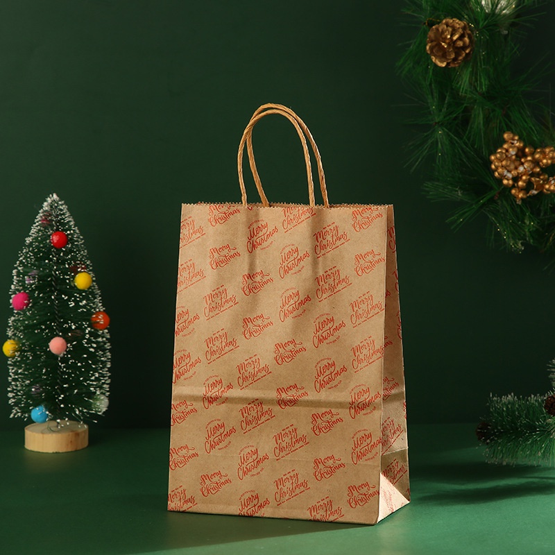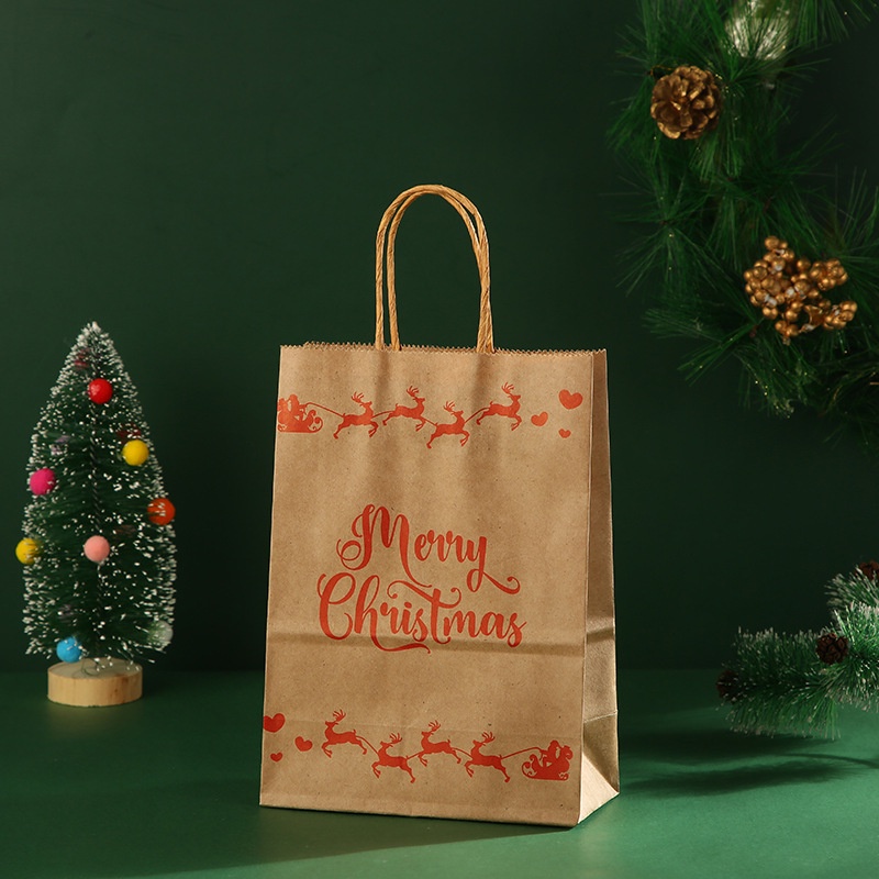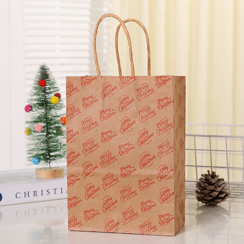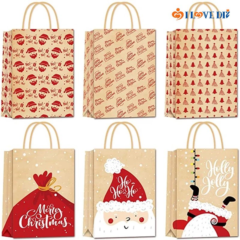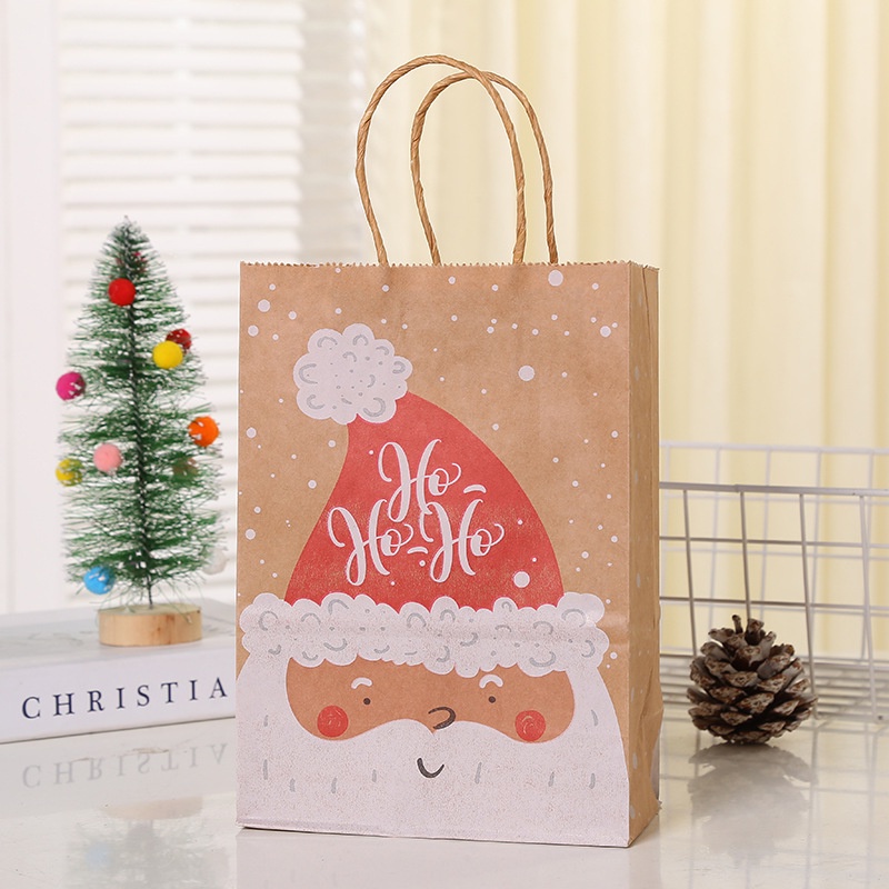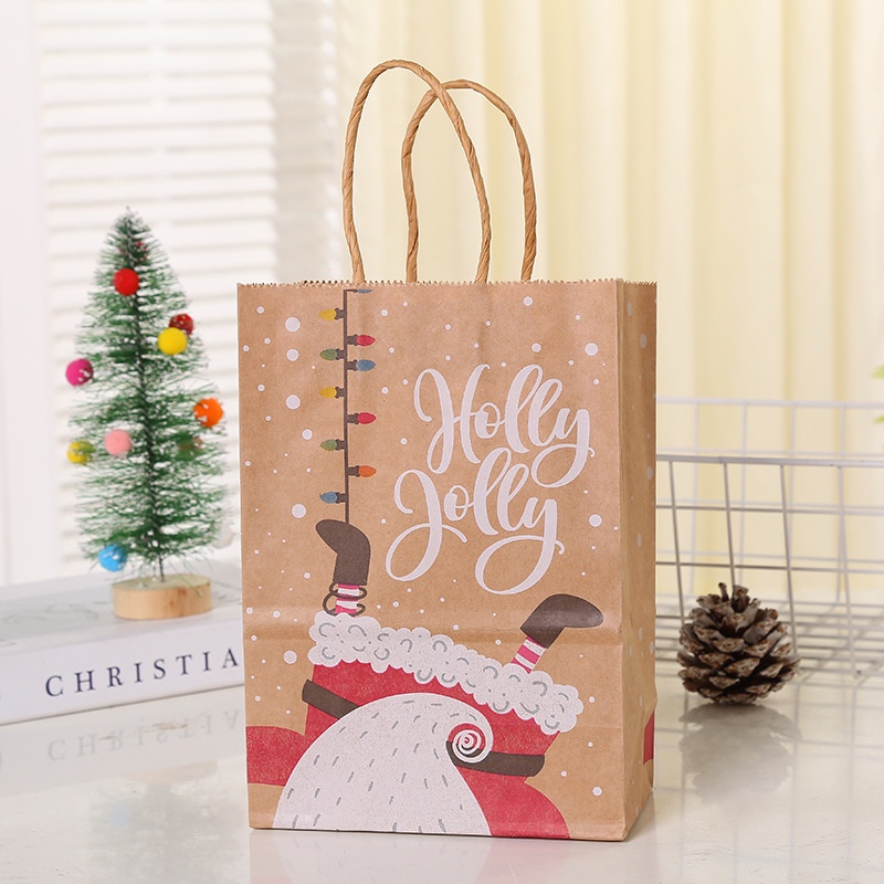 Merry Christmas Kraft Paper Bag With Handle/ Cartoon Santa Claus Candy Cookie Tote Bag/ Xmas Party Gift Favor Wrapping Bag