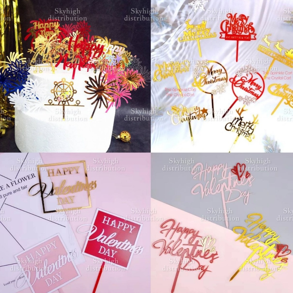 Merry Christmas Valentines Love Acrylic Topper New Year Topper Happy Holidays Acrylic Cake Topper