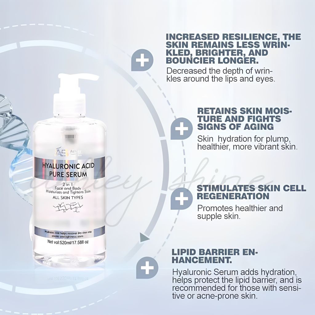 Ashley Shine Hyaluronic Acid Pure Serum 520ml | 2-in-1 Face & Body Moisturizing & Hydrating Serum