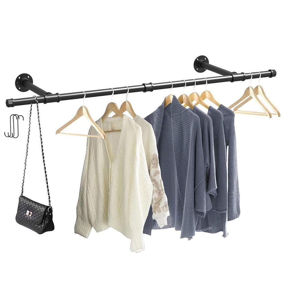 Metal Clothes Rack Wall Mounted Hanging Clothes Rack Clothes Rod Drying Racks Tube Hanger Clothing Storage