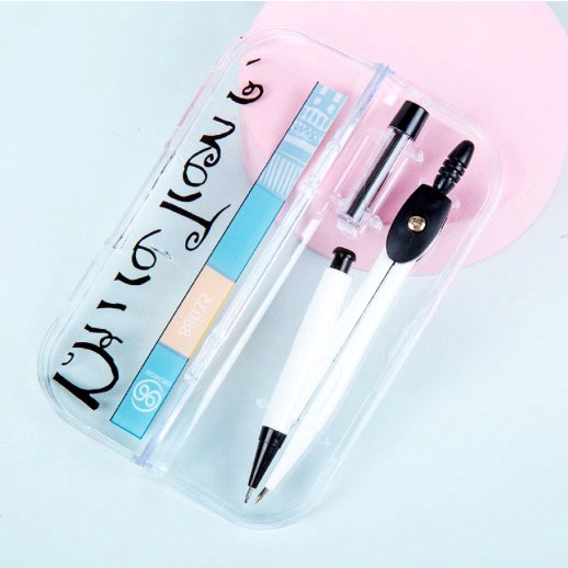 Metal Compass Student Stationery Simple drawing Compass Two-piece set, classic black replaceable lea