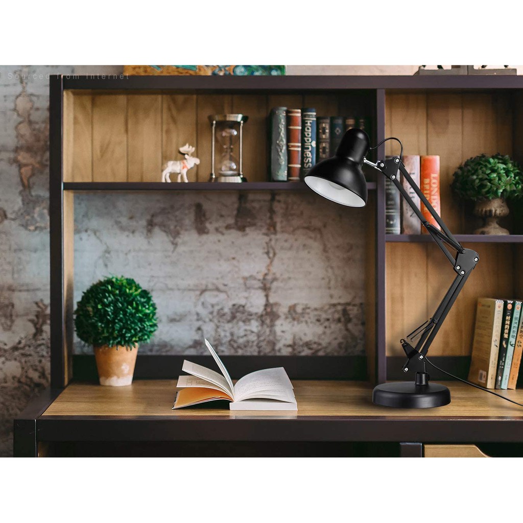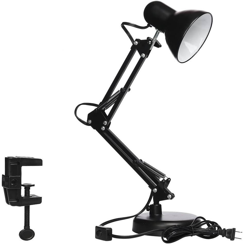 Metal Desk Lamp Black Adjustable Goose Neck Swing Arm Table Lamp with Interchangeable Base Or Clamp