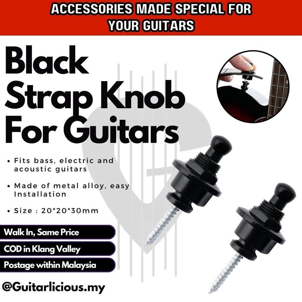 Metal Guitar Strap Knob Lock (Black) for Bass / Electric Guitar / Acoustic Guitar - 2 piece ( BDK18 / M182-2 )
