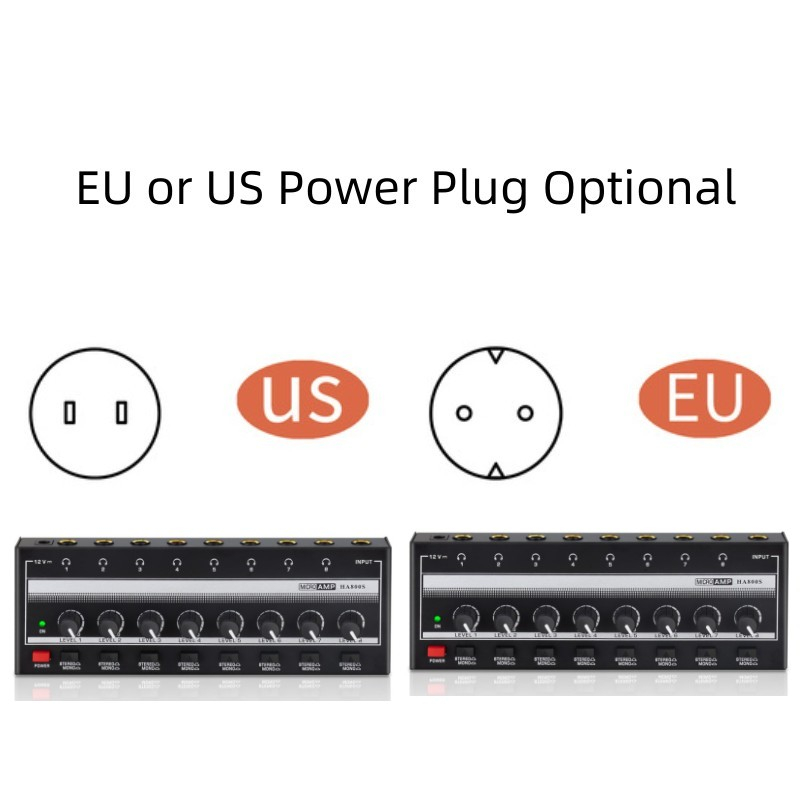 Metal Headphone Amp 8 Channel Stereo Portable Mini Headphone Splitter with 8 Stereo/Mono Switch for Sound Mixer HA800S