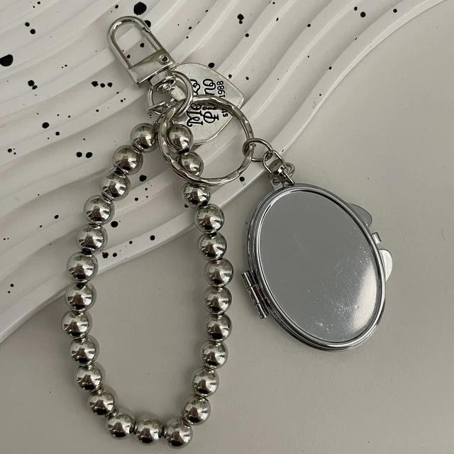 Metal Key Chain with Heart Shaped Mirror y2k Style Bag Pendant Sweet Cool Trendy Fashion Pendant