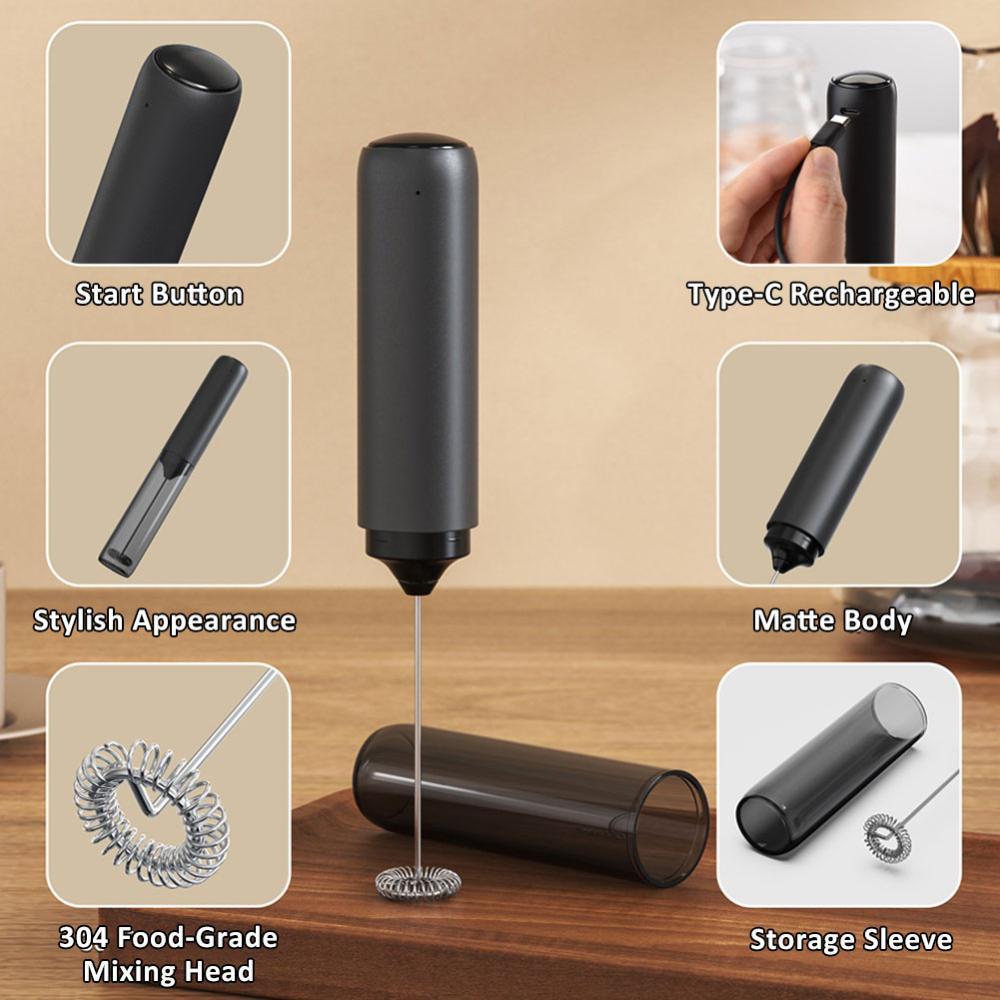 MOLANDOGO Portable Electric Milk Frother USB-C Rechargeable Silent Coffee Whisk Foam Maker For Cappuccino Latte Home Baristas Kitchen Stirrer I7Q5