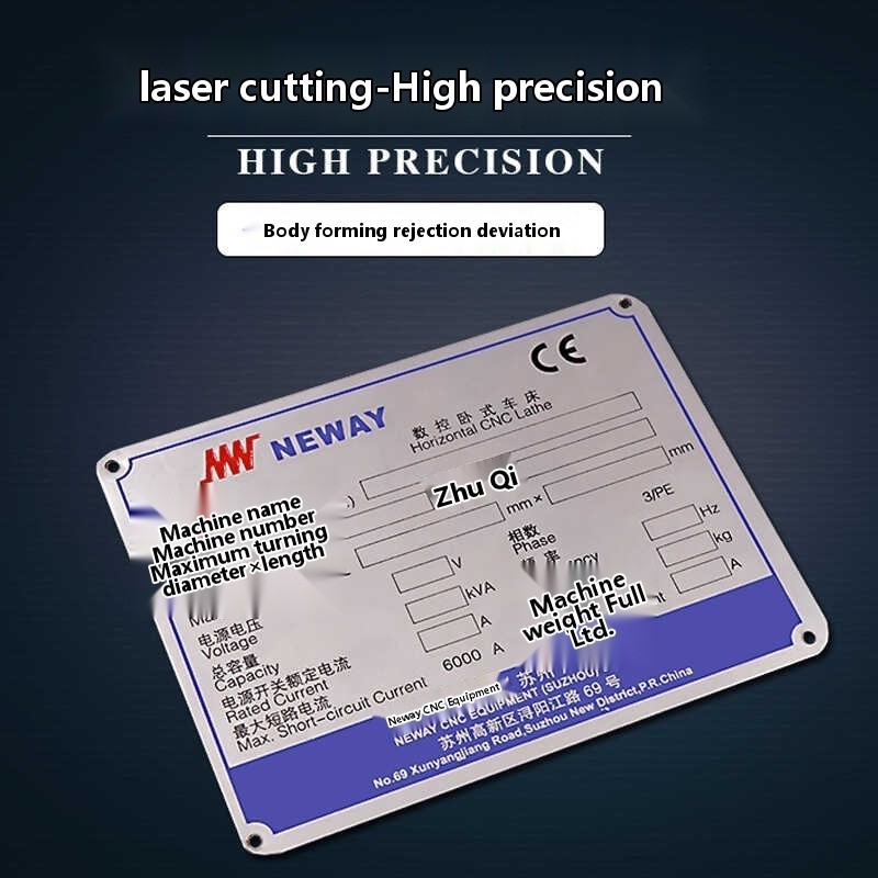 Metal Nameplate Stainless Steel Etched Plate Screen Printed Aluminum Distribution Box Identification