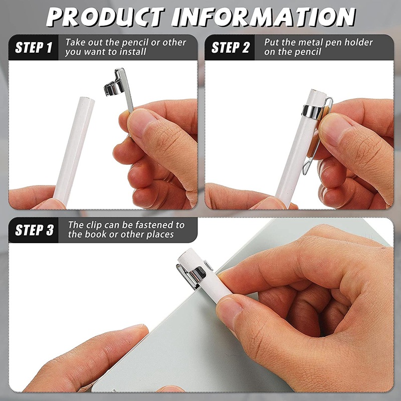 Metal Pencil Clips Slide on Pencil Pocket Clips Snap in, Pencil Holder Clip Metal Hangable Portable Pencil Clips, 60 Pcs yehengh