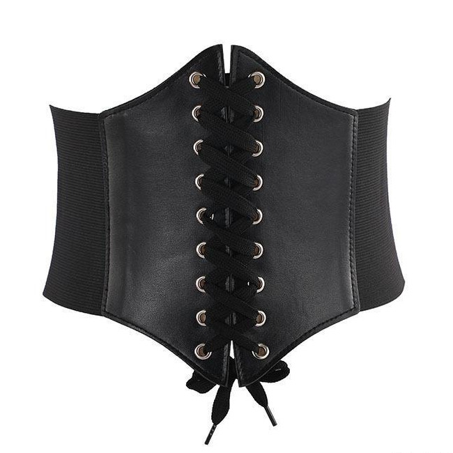 CQW.NO1'XKorean#ug&Sexy Vintage Faux Leather Wide Lace Up Waist Belt Shapewear Corset Body Shaper+s