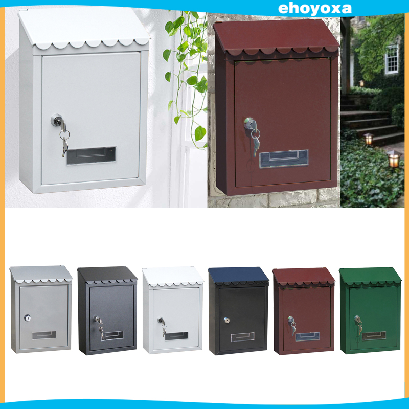 Metal Rust- Mailbox Letterbox Wall-mounted 8x2.6x12'' Post Mail Secure Lockable Mail Box Front Door Decorative Drop Box Storage Case