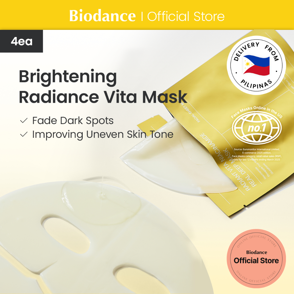 [Biodance Official] Radiant Vita Niacinamide Real Deep Mask (4ea) | Correct Dark Spots, Vitamin Mask