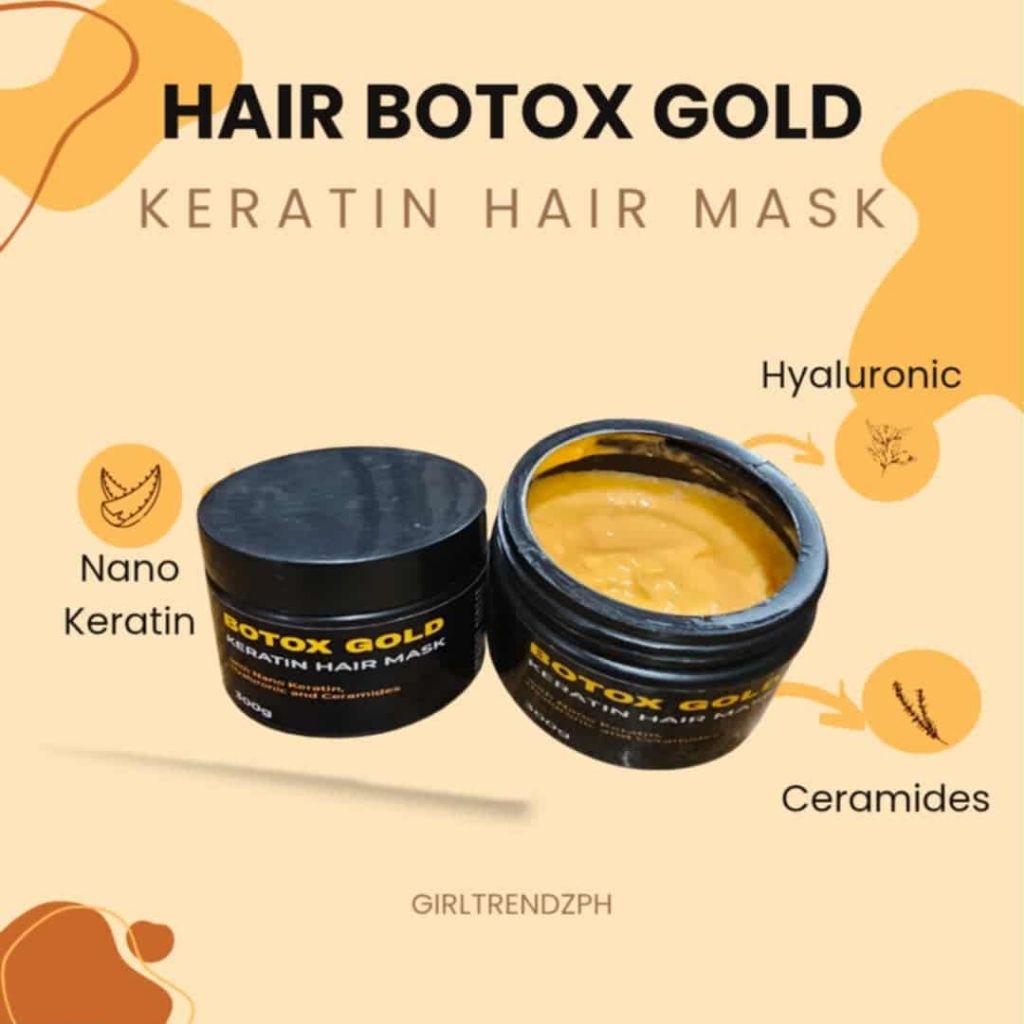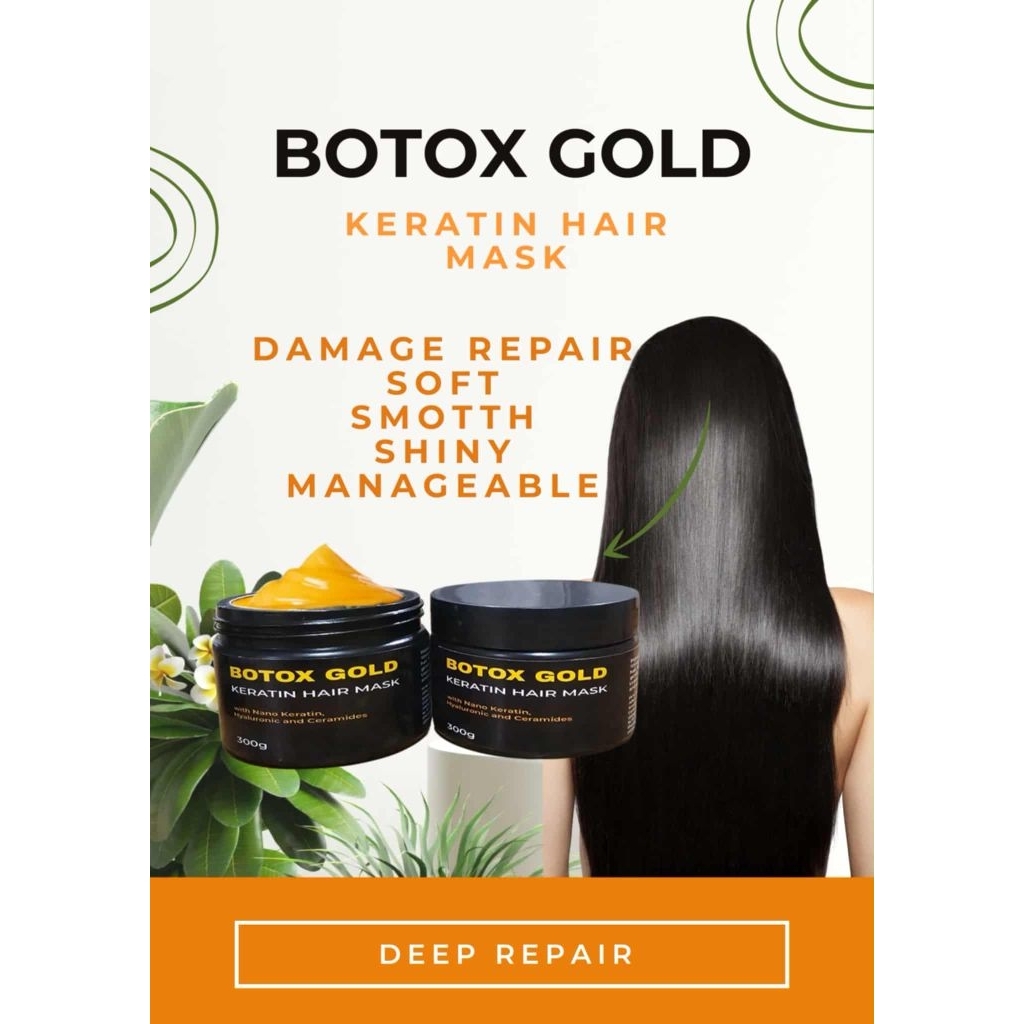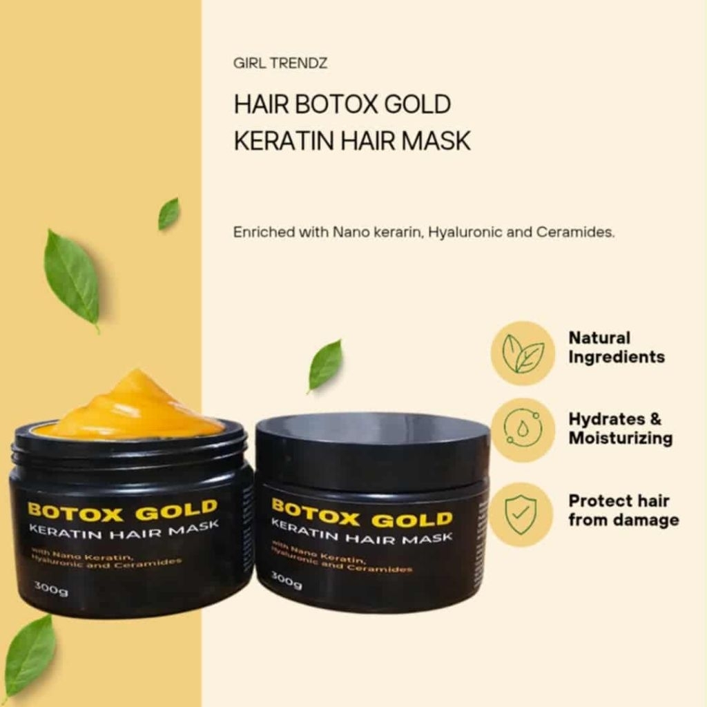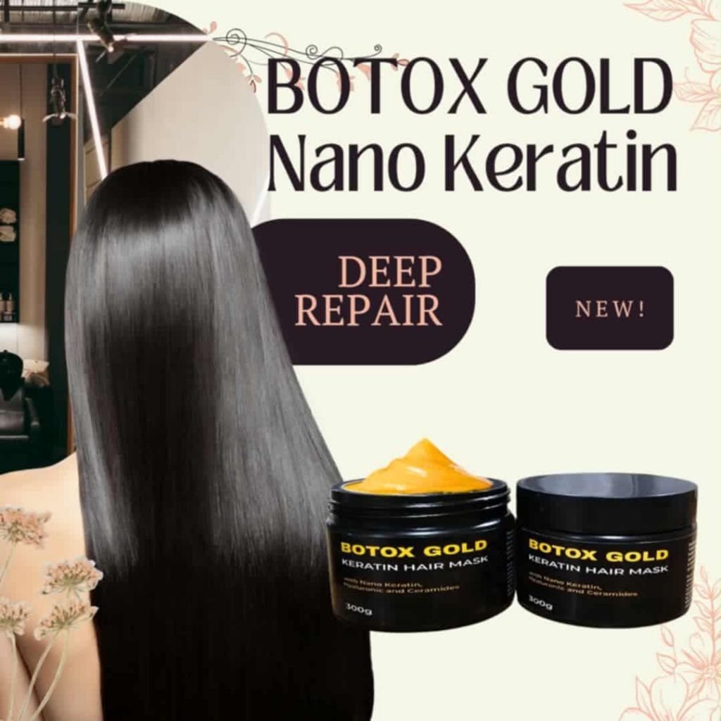 Hair Botox Gold Nano Keratin Hair Mask with Hyarulonic and Ceramides 300g