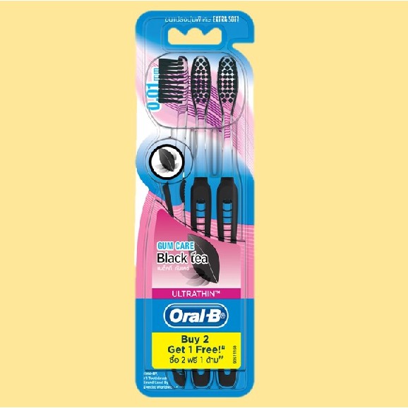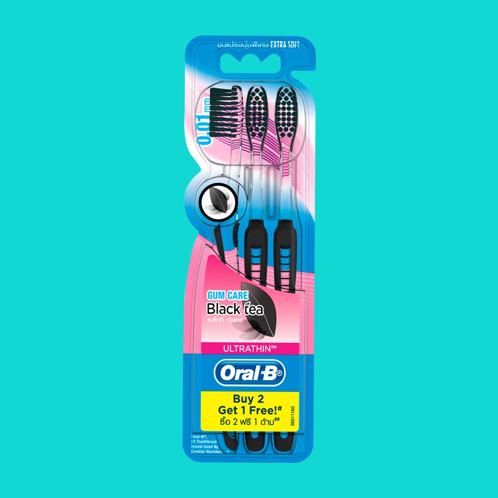 ORAL B Manual Toothbrush Ultrathin Gum Care Black Tea Extra Soft x 3