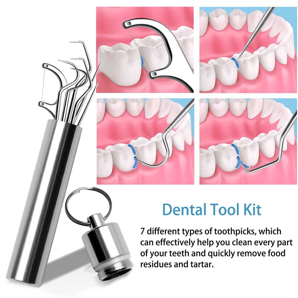 7Pcs Portable Stainless Steel Toothpicks Set Reusable Metal Toothpicks Cleaning Kit with Holder