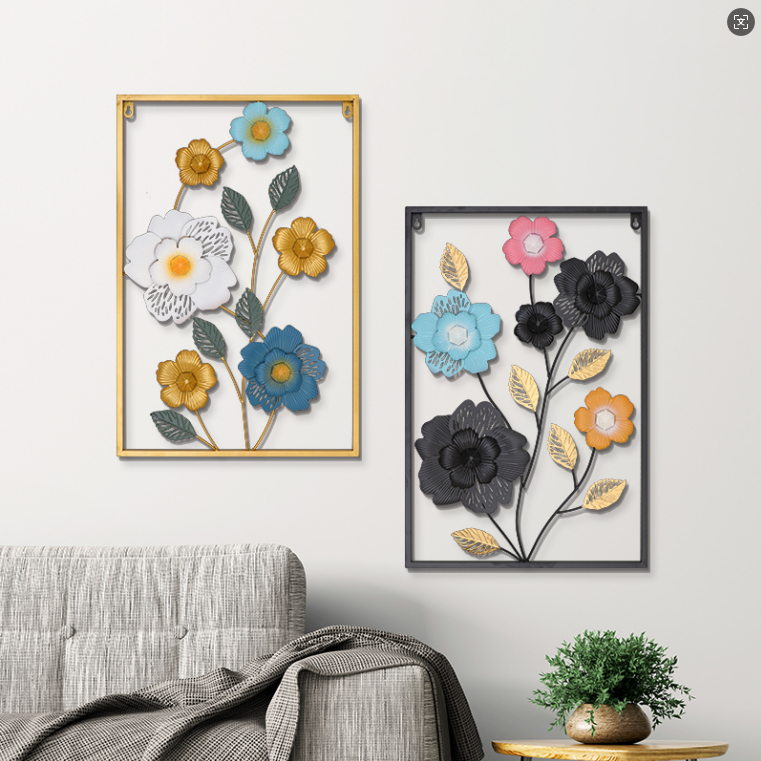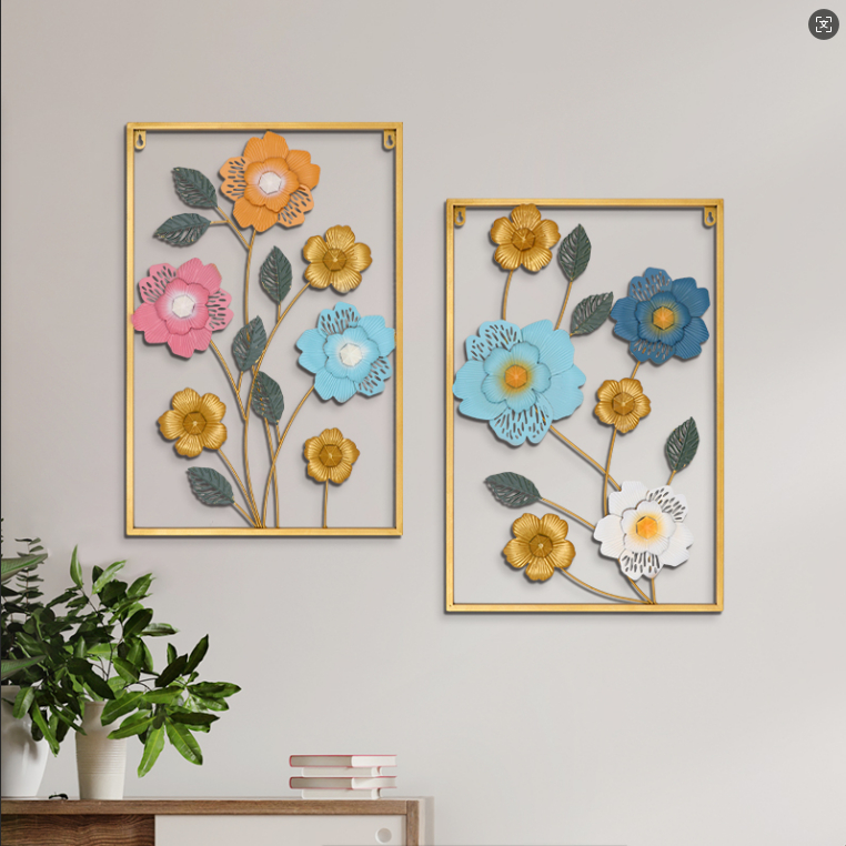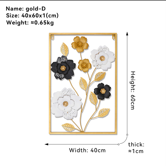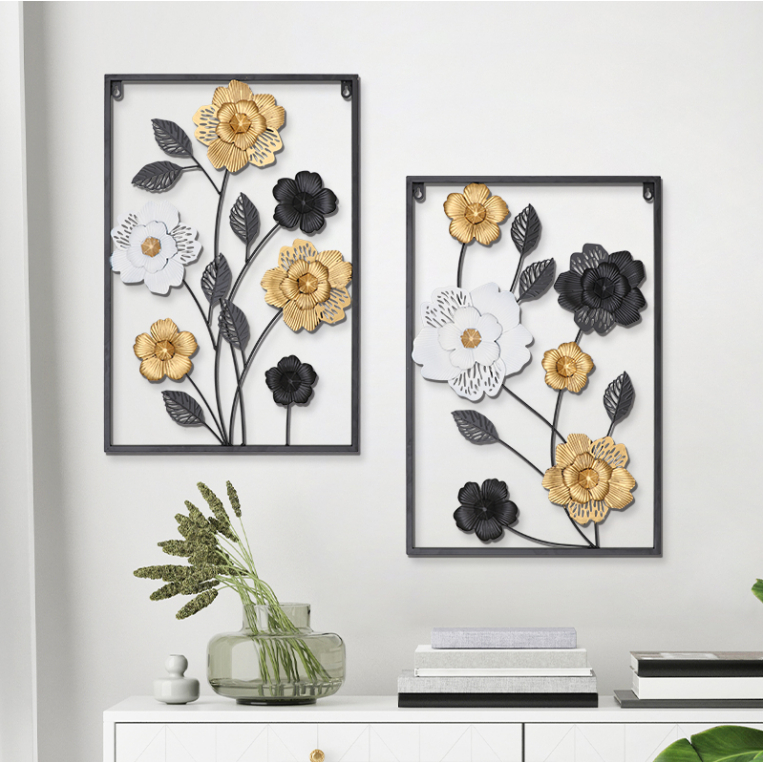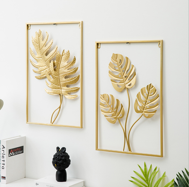 Metal Wall Decor with Square Frame, Metal Leaf Wall Art Decor Gold Framed Leaves Artwork