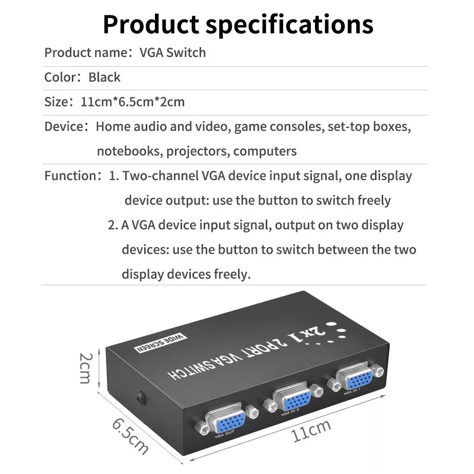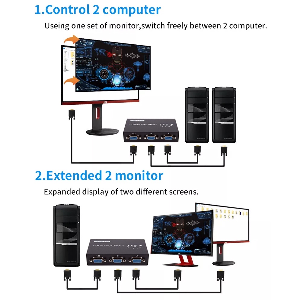 Metal case 1920x1440 Vga 2-In-1-Out 2 Port Sharing Switch Splitter Box ( VGA 2-PORT )