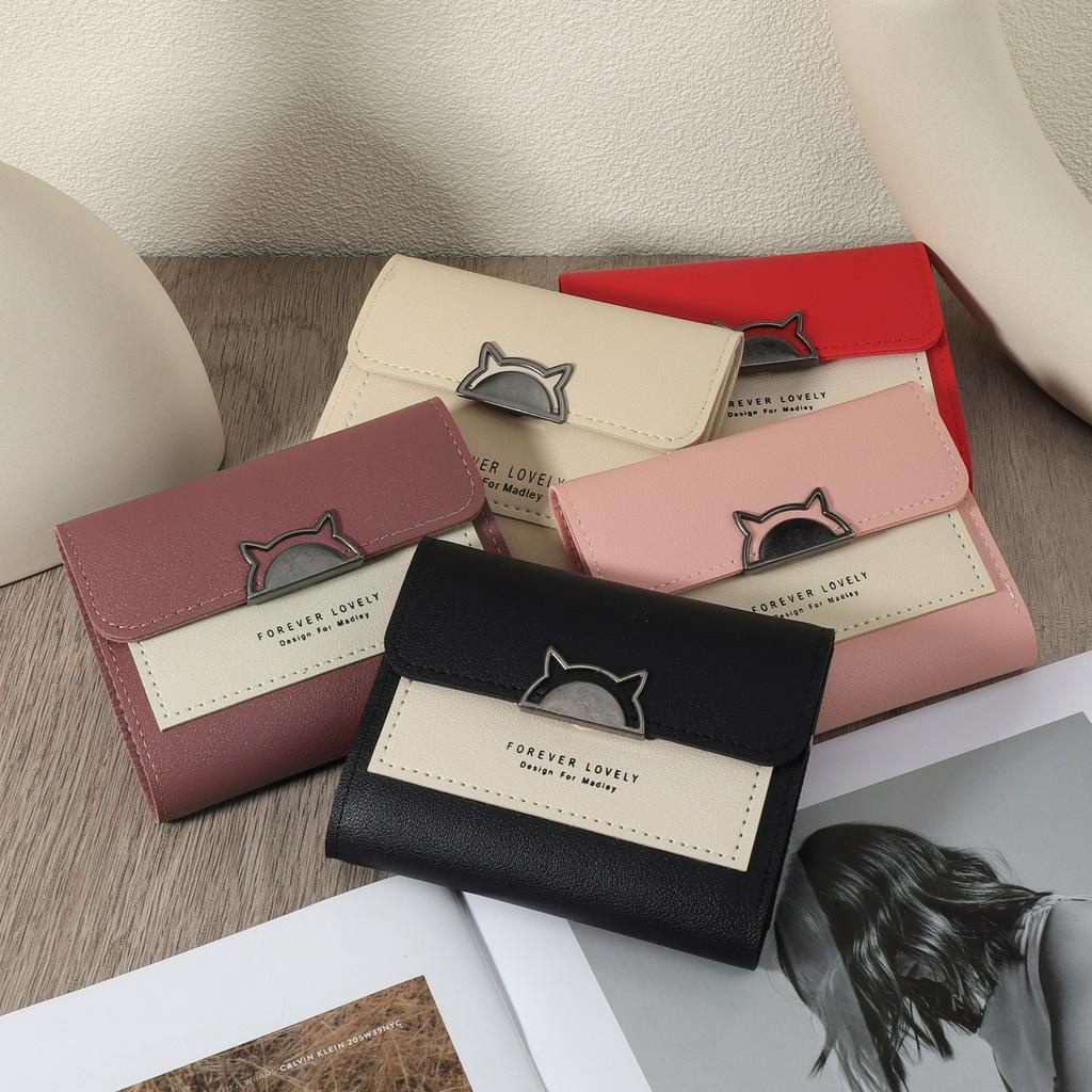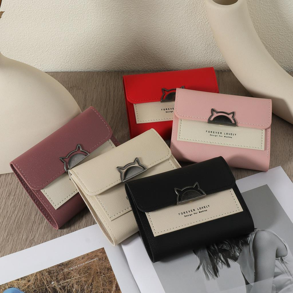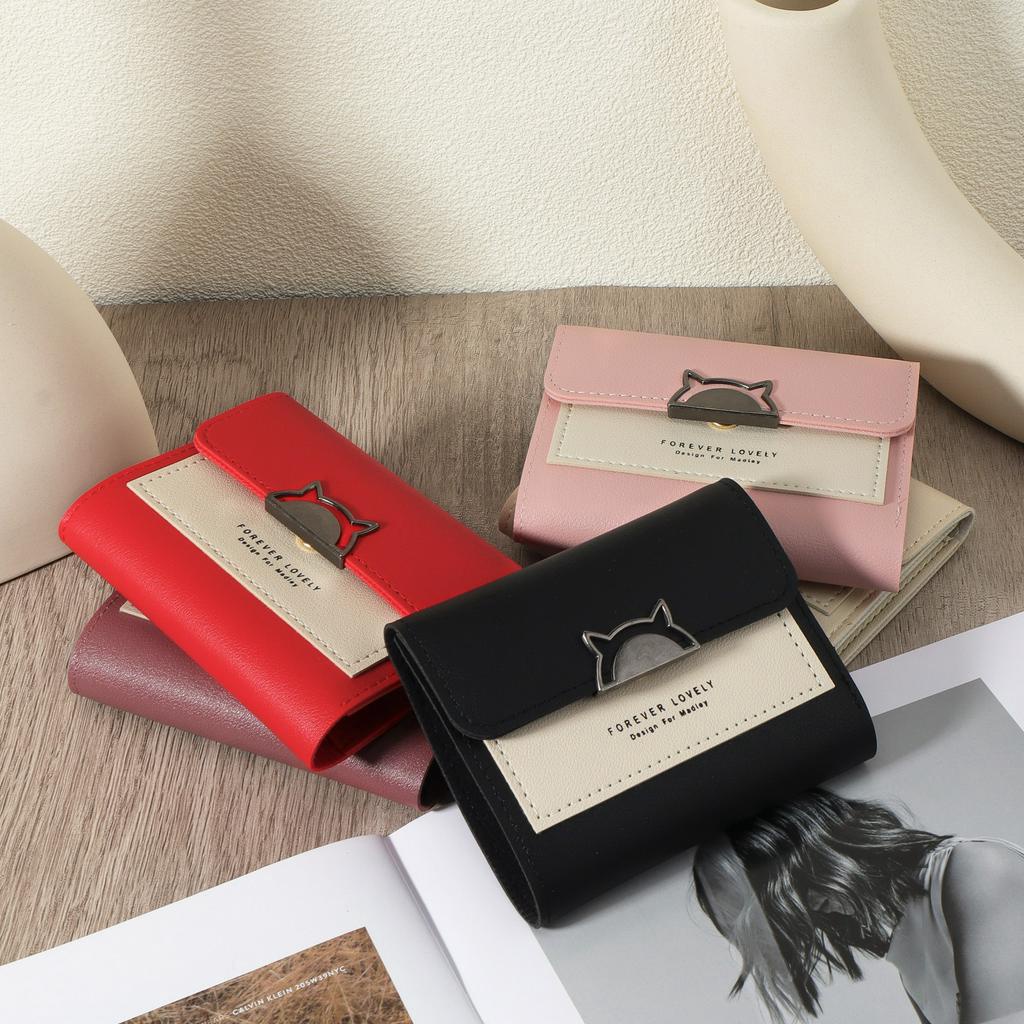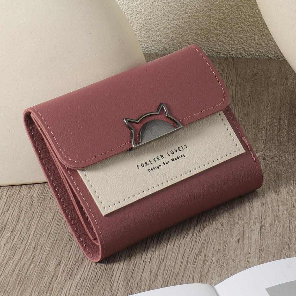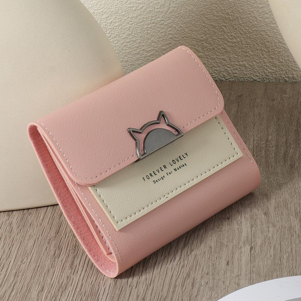Metal cute cat decoration small wallet coin pocket small wallet 30 fold women's wallet mini with multiple card slots and Id window women's wallet
