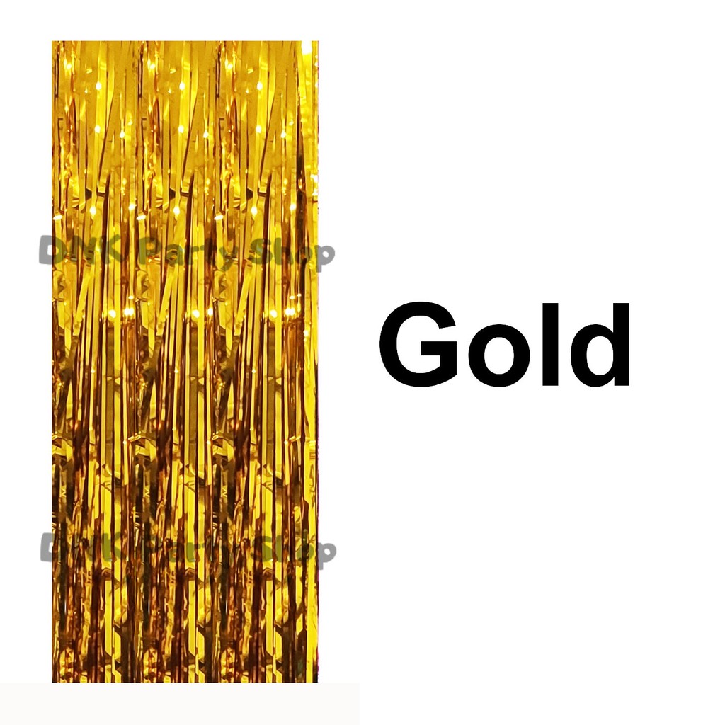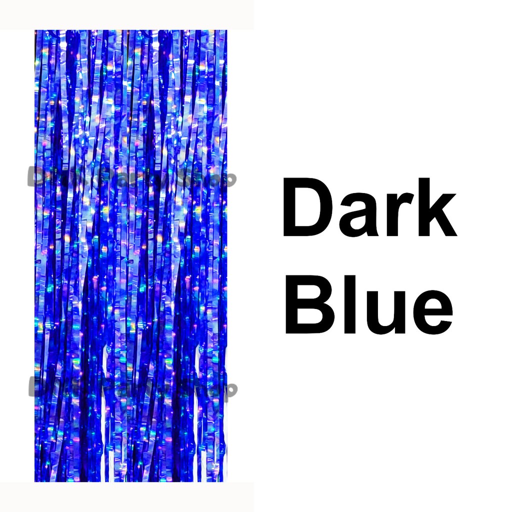 Metallic Glossy Foil Curtain Party Streamer Decoration Fringe Tinsel (3M/2M*1M) Plastic Blue Gold