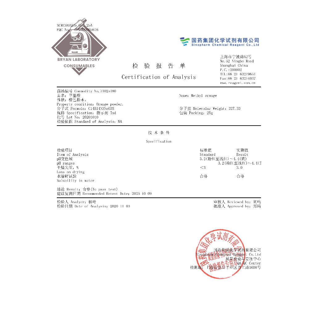 Methyl Orange AR Analytical Pure IND Acid-Base Indicator 25g CAS:547-58-0