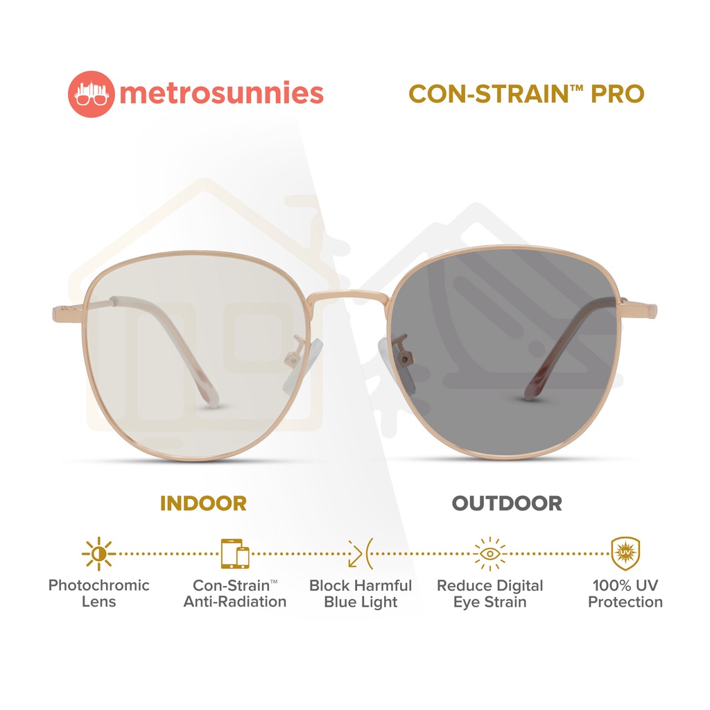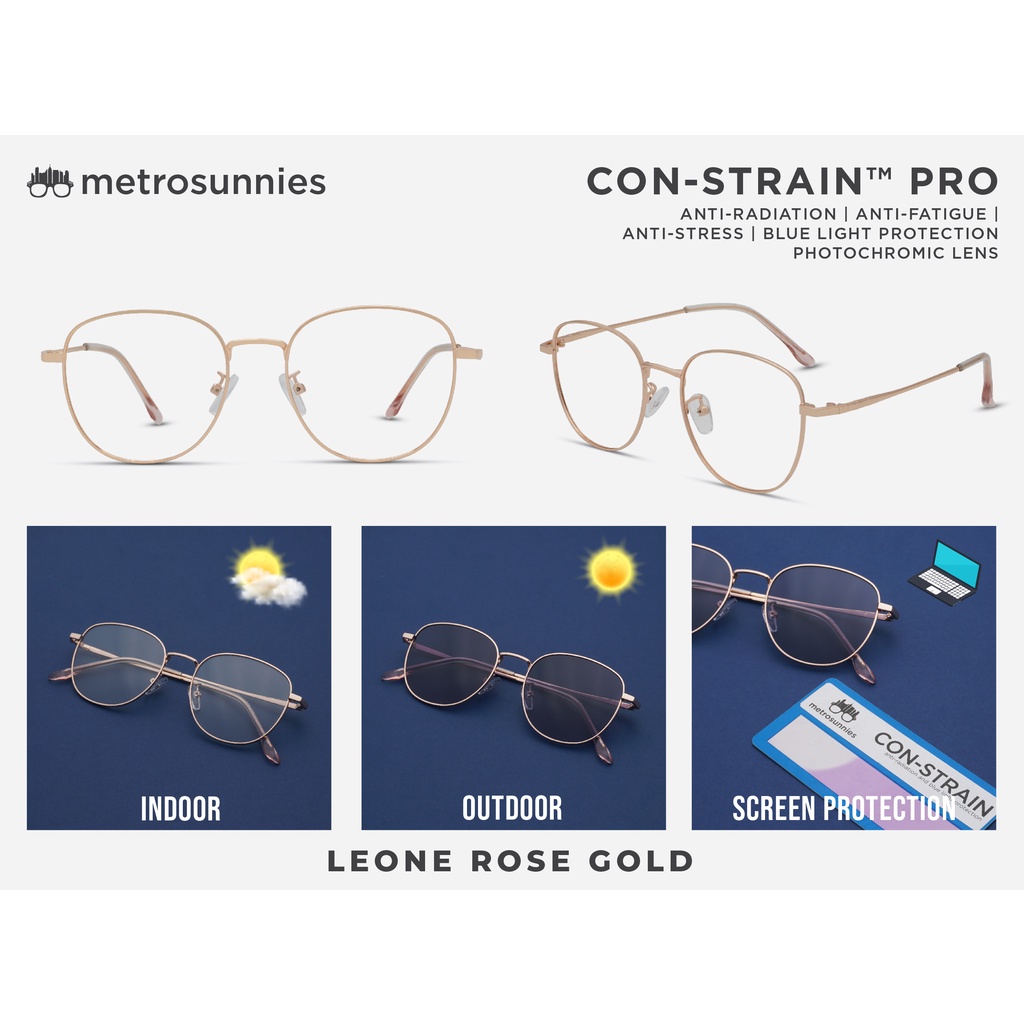 MetroSunnies Leone (Rose Gold) / Con-Strain PRO Photochromic Blue Light / UV400 / Anti-Radiation