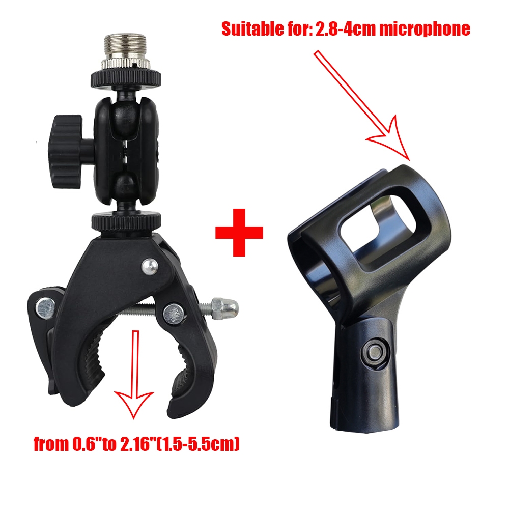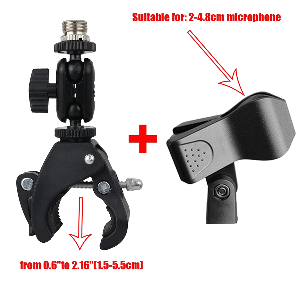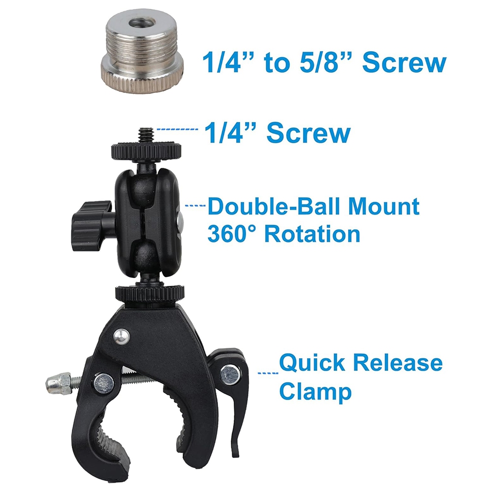 Mic Crab Clamp Microphone Mount with Double Ball Head Adjustment 1/4" to 5/8" Thread, Fits Mic Stand, Drum Stand, Desktop Shelf