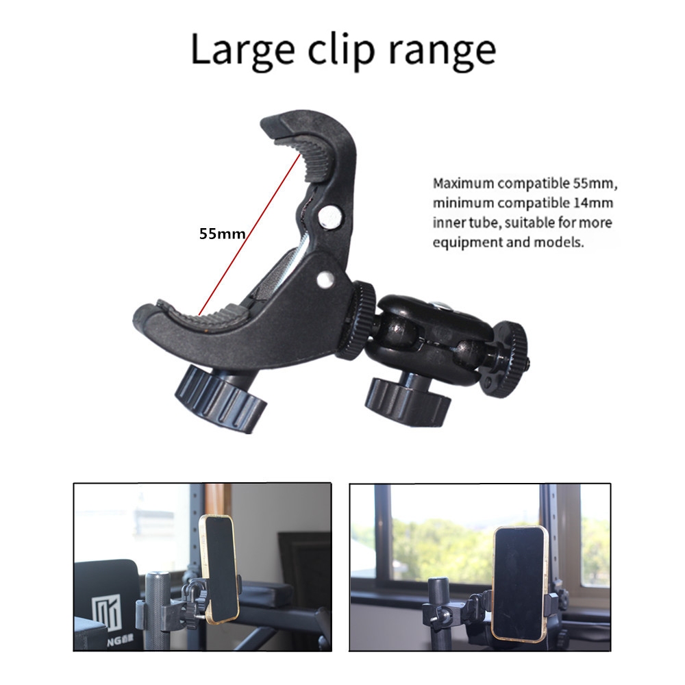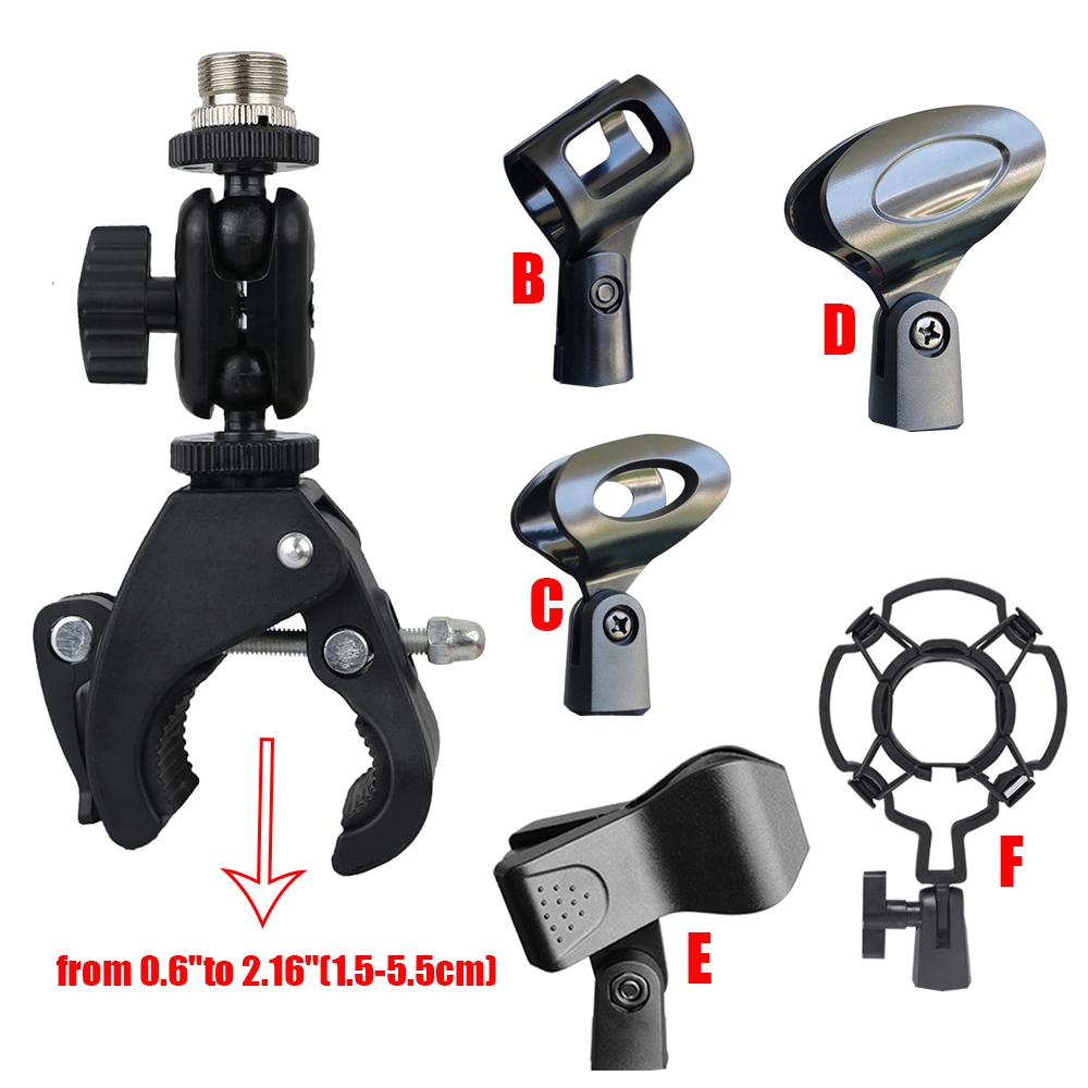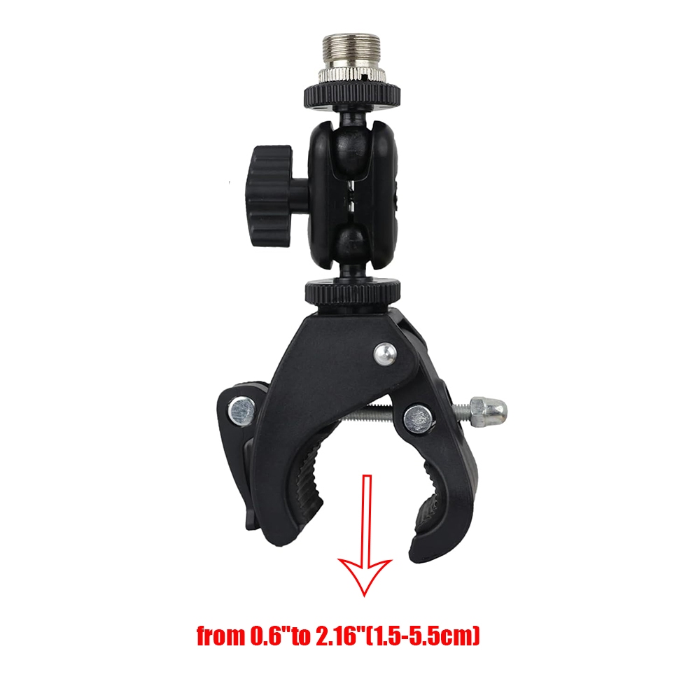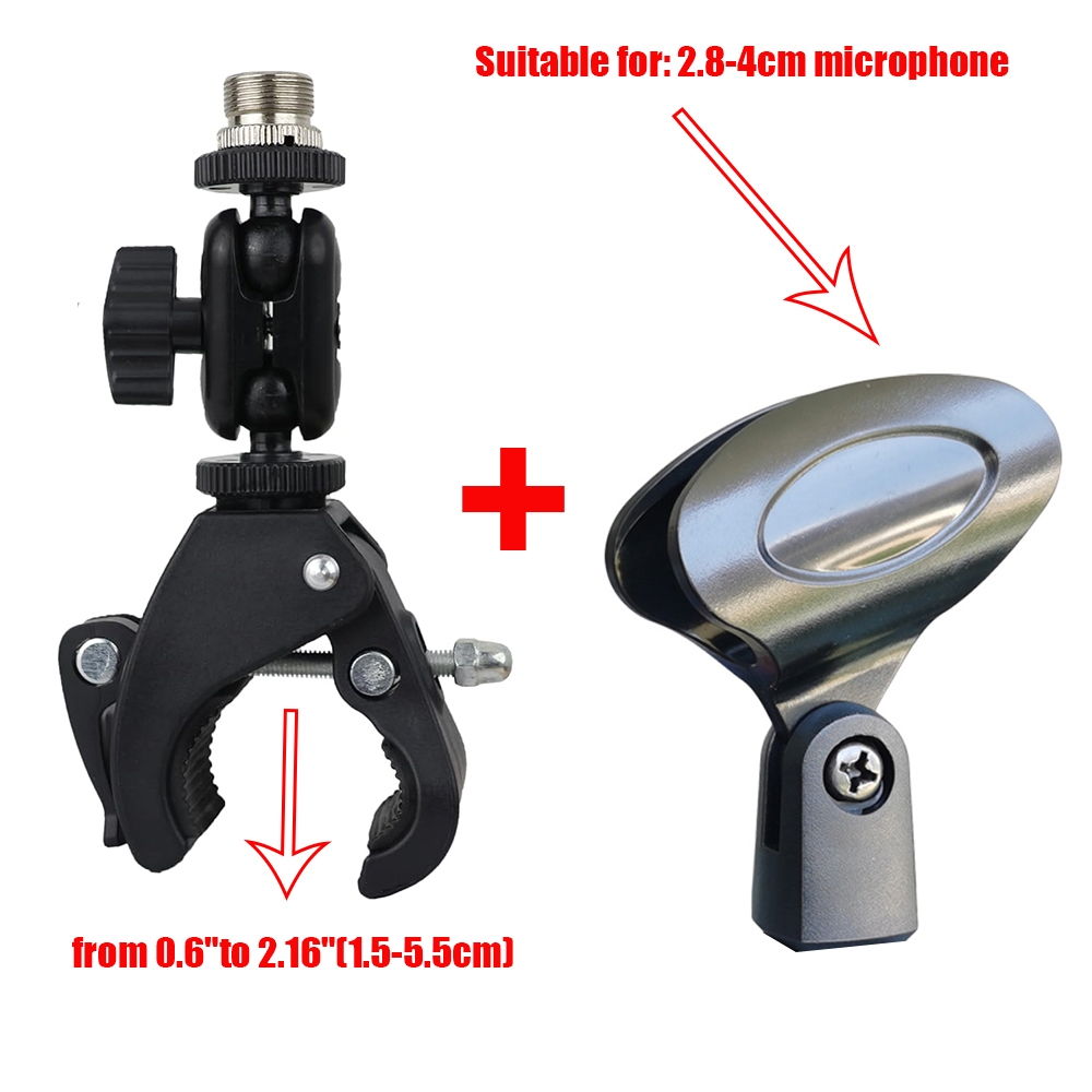 Mic Crab Clamp Microphone Mount with Double Ball Head Adjustment 1/4" to 5/8" Thread, Fits Mic Stand, Drum Stand, Desktop Shelf