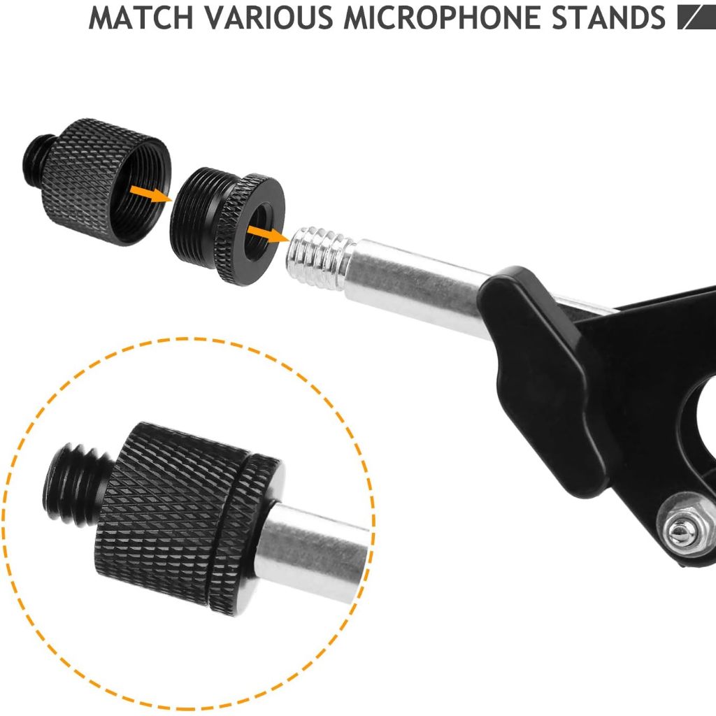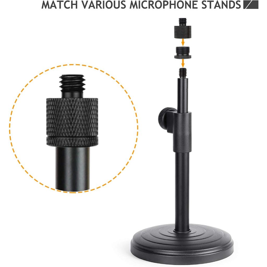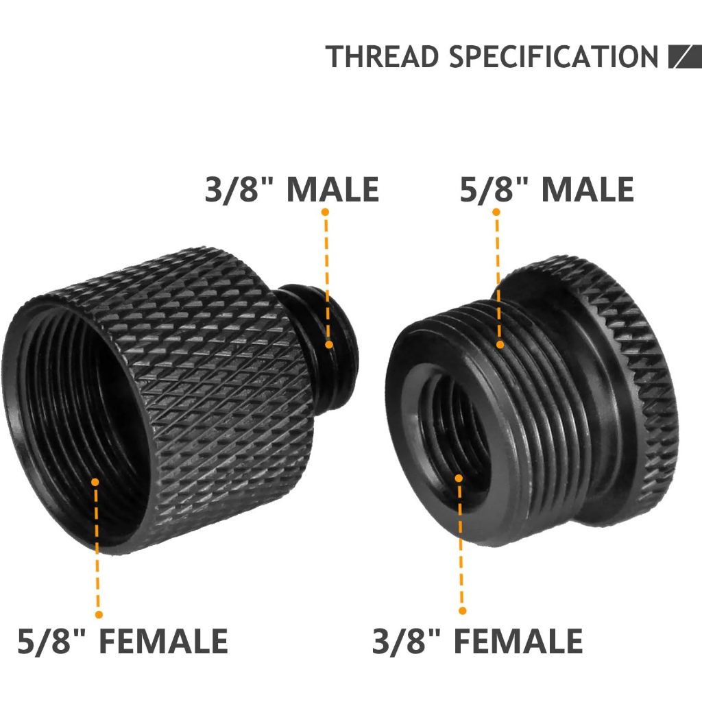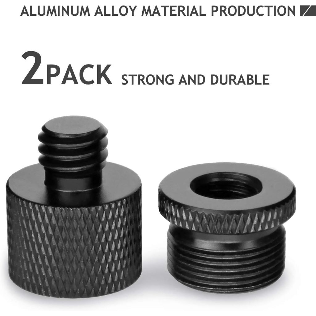 Mic Stand Adapter 5/8 Female to 3/8 Male and 3/8 Female to 5/8 Male Screw Adapter Thread for Microphone Stand Mount to Camera Tripod Adapter 2 Pack